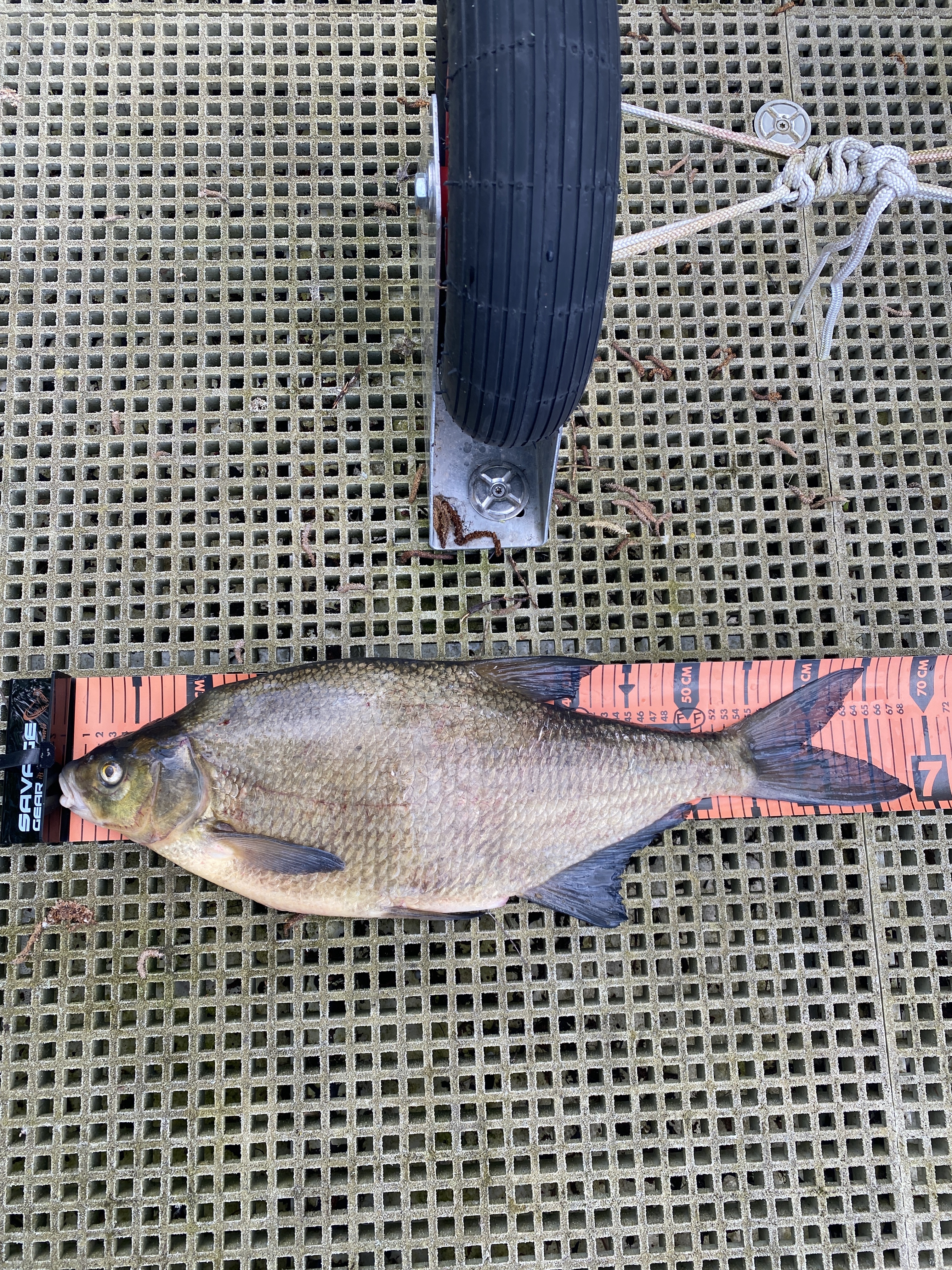 Am 04.05.24 kamen ein paar Angelkollegen und wir konnten unseren Steg für Slippen und Anlanden mehrerer Kajaks testen. Geangelt wurde ebenfalls fleißig. Dabei kamen leider keine Hechte raus. Wenigstens einer der Angler konnte sich dank einer gierigen Brasse entschneidern: