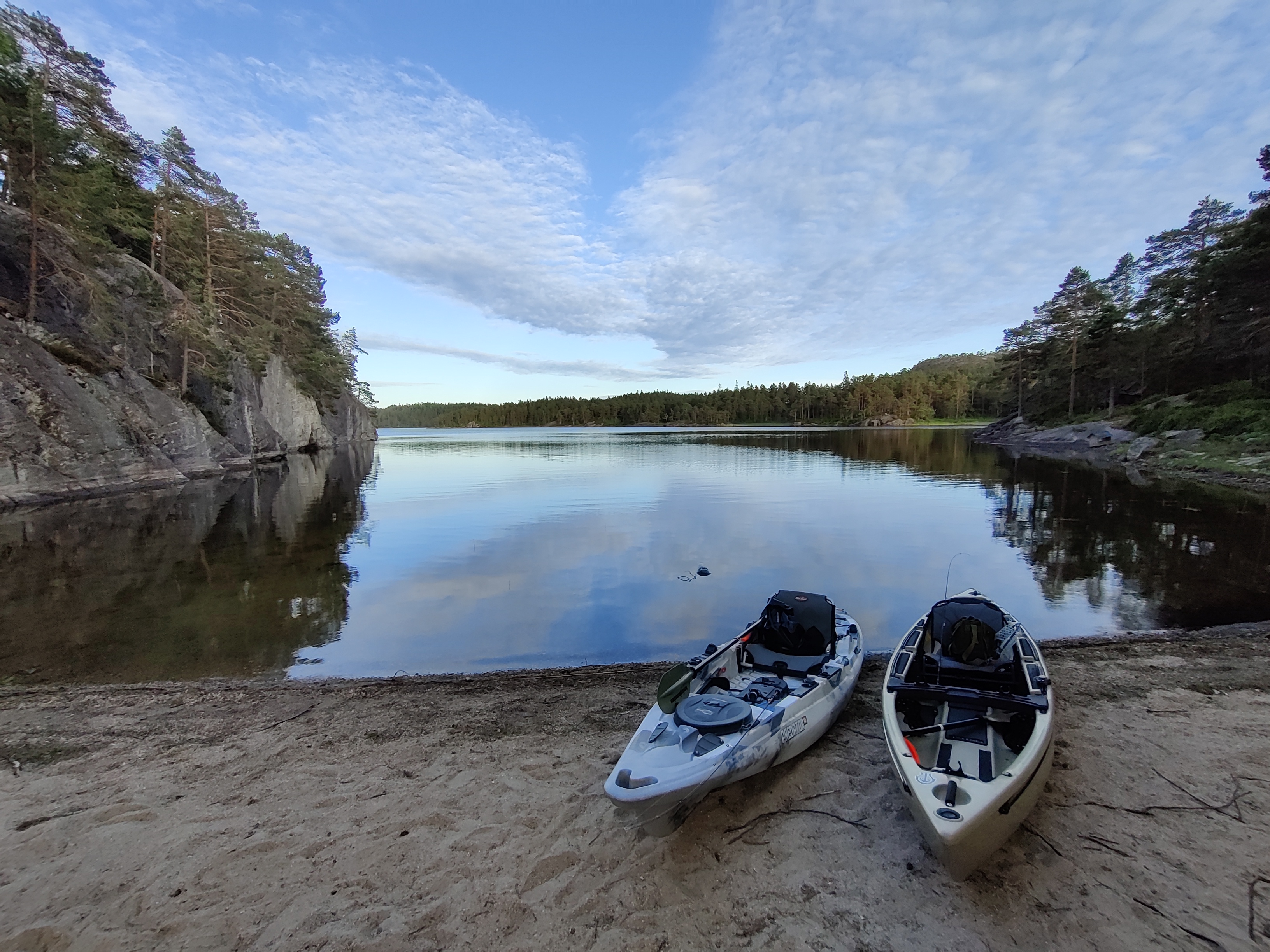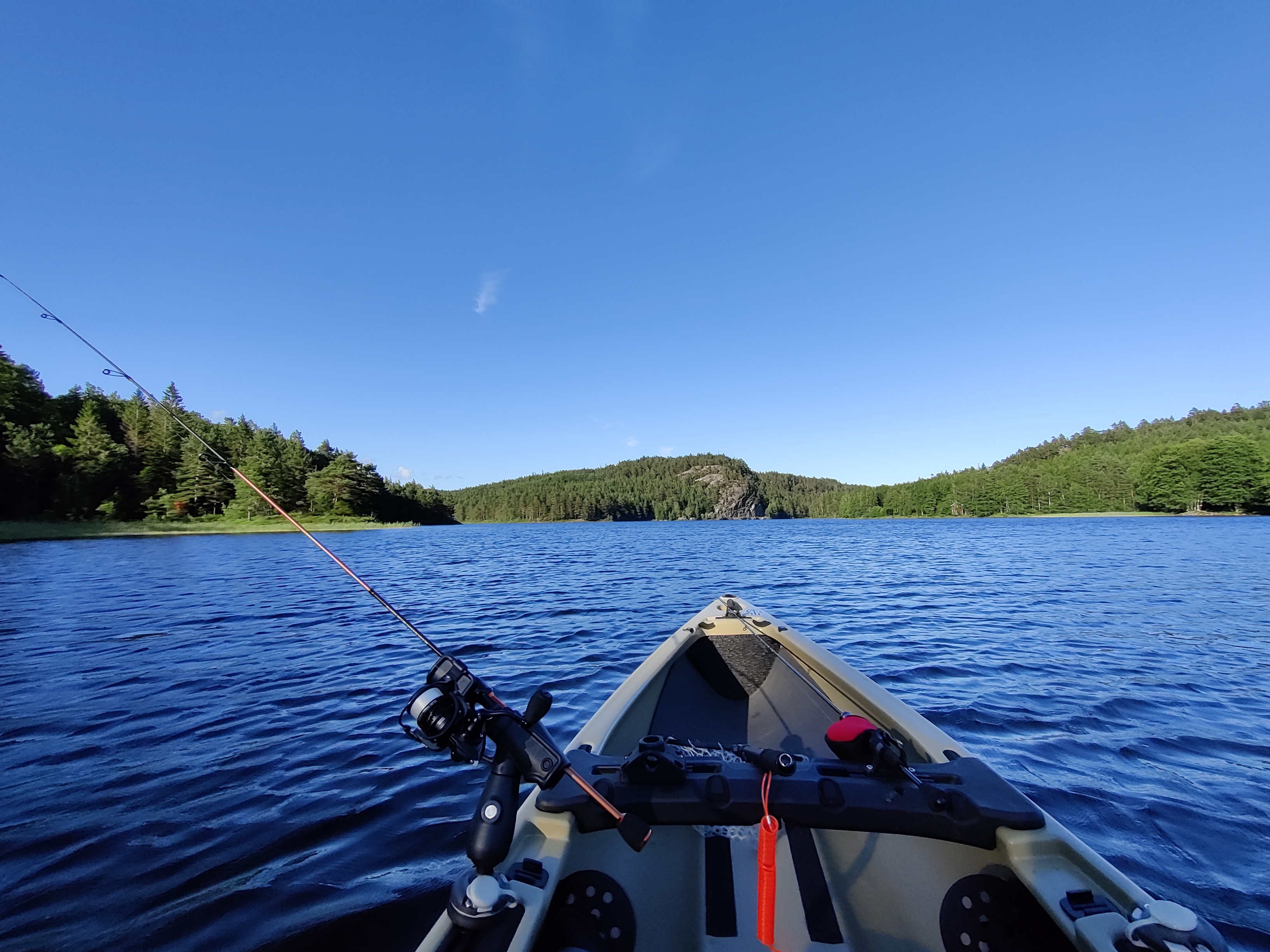 Hallo Kalle, der "Kleine" war schon oft mit auf dem Boot und auch vor Jahren mit auf einem Kayak. Da hab ich aber nicht versucht nebenbei zu angeln. Nun ist er fast 13 Jahre alt und wesentlich ruhiger, mal ausprobieren wie es so geht. Wenn er sich mit seinen 40 kg bewegt wird man es aber so oder so merken. Grüße aus dem sonnigen Agder, Oli.