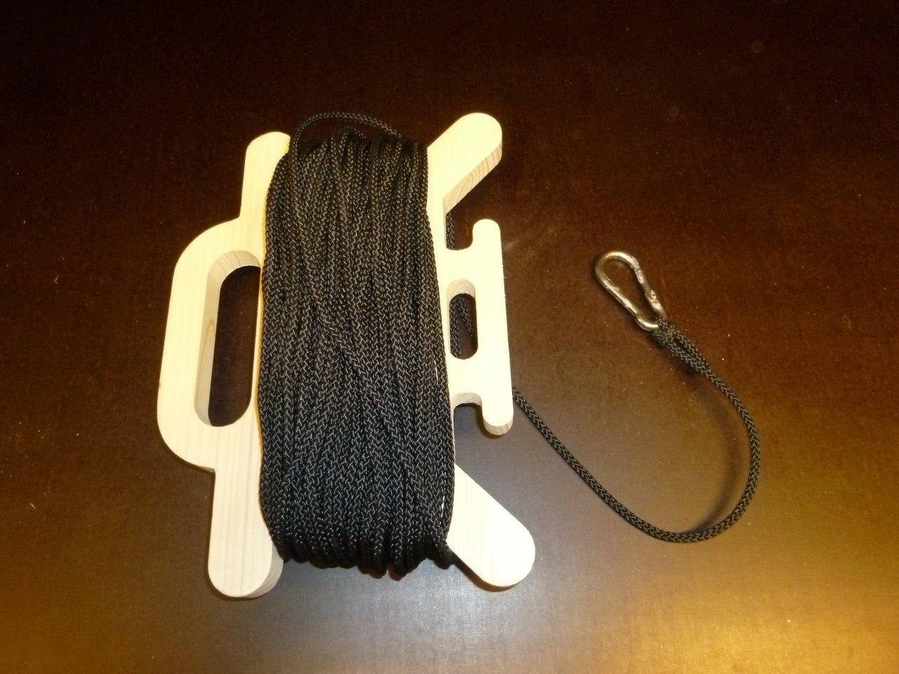 Auf die Haspel passen ca. 40m 4mm-Schnur. Den "Prototypen" habe ich erst mal aus einfachen Fichtenholz gefräst. Eine Siebdruckplatte steht aber schon bereit. Materialaufwand ca. 2€, Fertigungszeit ca. 4 Miunten...