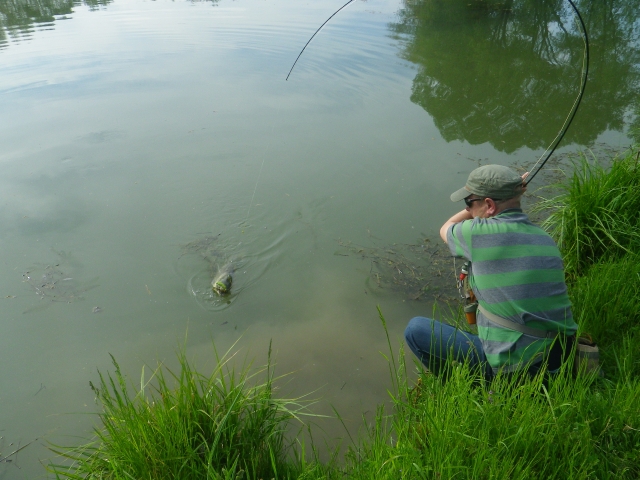 probiere mal sowas: Nach meiner Erfahrung ist bei solchen großen Grasfischfliegen die Konsistenz der Fliege sehr wichtig. Weiche Hasenfell oder Maraboufliegen fangen wesentlich besser als die strazigen, harten Muster. Die Grasfische testen die Fliege sehr häufig nur mit den Lippen. Wenn etwas nicht stimmt, wird die Fliege nicht eingesaugt. Eine kleine Fliege, die schön ins Grasermaul passt, ist auch sehr vorteilhaft. Wolly Bugger in olive, grün usw. fangen auch sehr gut.