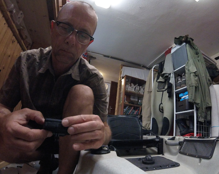 Je nach Ausrichtung (Raster), bin ich mit Rute links, Rute rechts im Bild, oder die Cam zeigt zur Seite bzw. nach vorn. Bei Bedarf kann ich weitere Löcher bohren oder auch die Mittelschraube durch eine Knebelschraube für eine stufenlose Verstellung ersetzen.