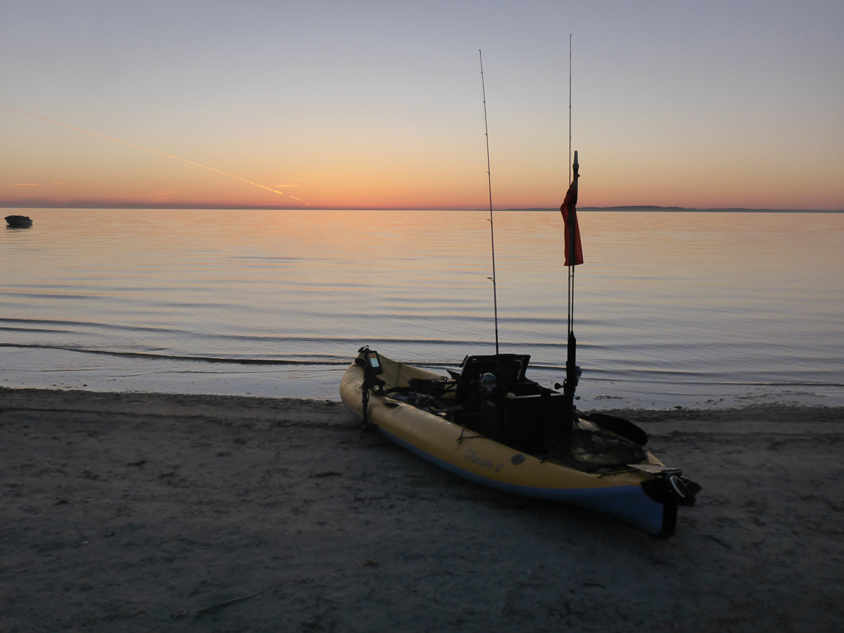 Stabil liegt es auch im Wasser, beziehungsweise es klebt auf dem Wasser. Das i12s hat ansicht ja keinen richtigen Rumpf, sondern eine flache Unterseite. Drauf stehen geht auch. Auch wenn ich nicht umbedingt dauerhaft so angeln möchte. Und bei zu großen Wellengang gehe ich sowieso nicht raus. Kommt ja auch immer drauf an, ob ablandig oder nicht ...