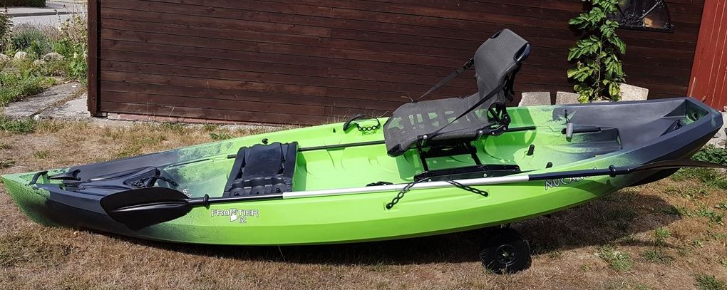 So stieß ich bei der Internetrecherche auf das NuCanoe Frontier 12, ein sehr kippsicheres Kajak mit offenem Deck und sehr variablen Ausstattungsmöglichkeiten.