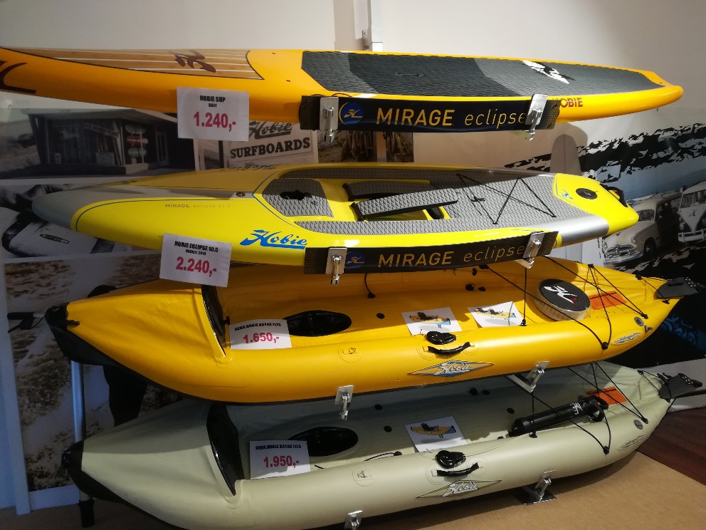Es ist immer wieder schön, soviel verschiedene Kayak Modelle auf einem Haufen zu sehen. Für interessierte liegt bei Sportmohr nicht nur ein Hobie Outback 2019 zum Kauf, sondern auch noch ein Hobie Outback 2018 camo zum Sonderpreis.