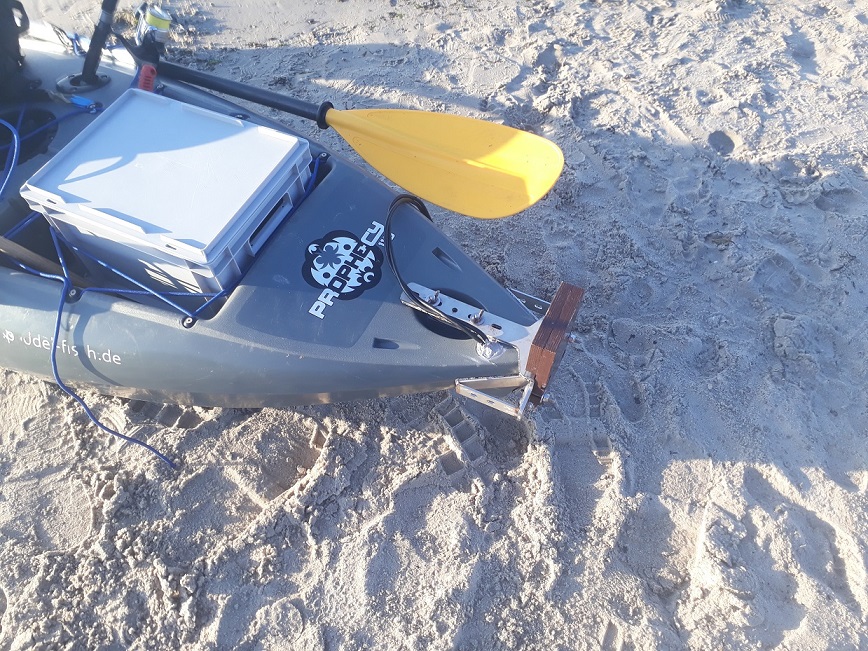 Ich kaufte mir einen speziellen E-Motor für Kajaks zum Nachrüsten im Angelladen. (den Watersnake T-18 SW mit 18LB)