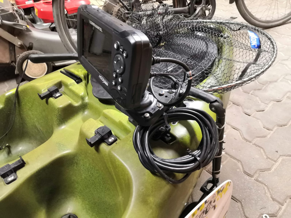 Batterie/Echolot- und Geberhalter sind von FishFinderMounts https://www.fishfindermounts.com/shop-c161y und ich bin recht zufrieden damit. V.a. find ich's ganz angenehm, dass das Echo direkt in Reichweite ist. Meistens bin ich mit, gelegentlich aber auch mal ohne Echo draussen und mir ist noch nie ein Unterschied bzgl. Schlagseite aufgefallen. Einzig die Schiene, in der die Halterung sitzt, hat sich minimal gelockert und musste nach einer Saison wieder nachgezogen werden.