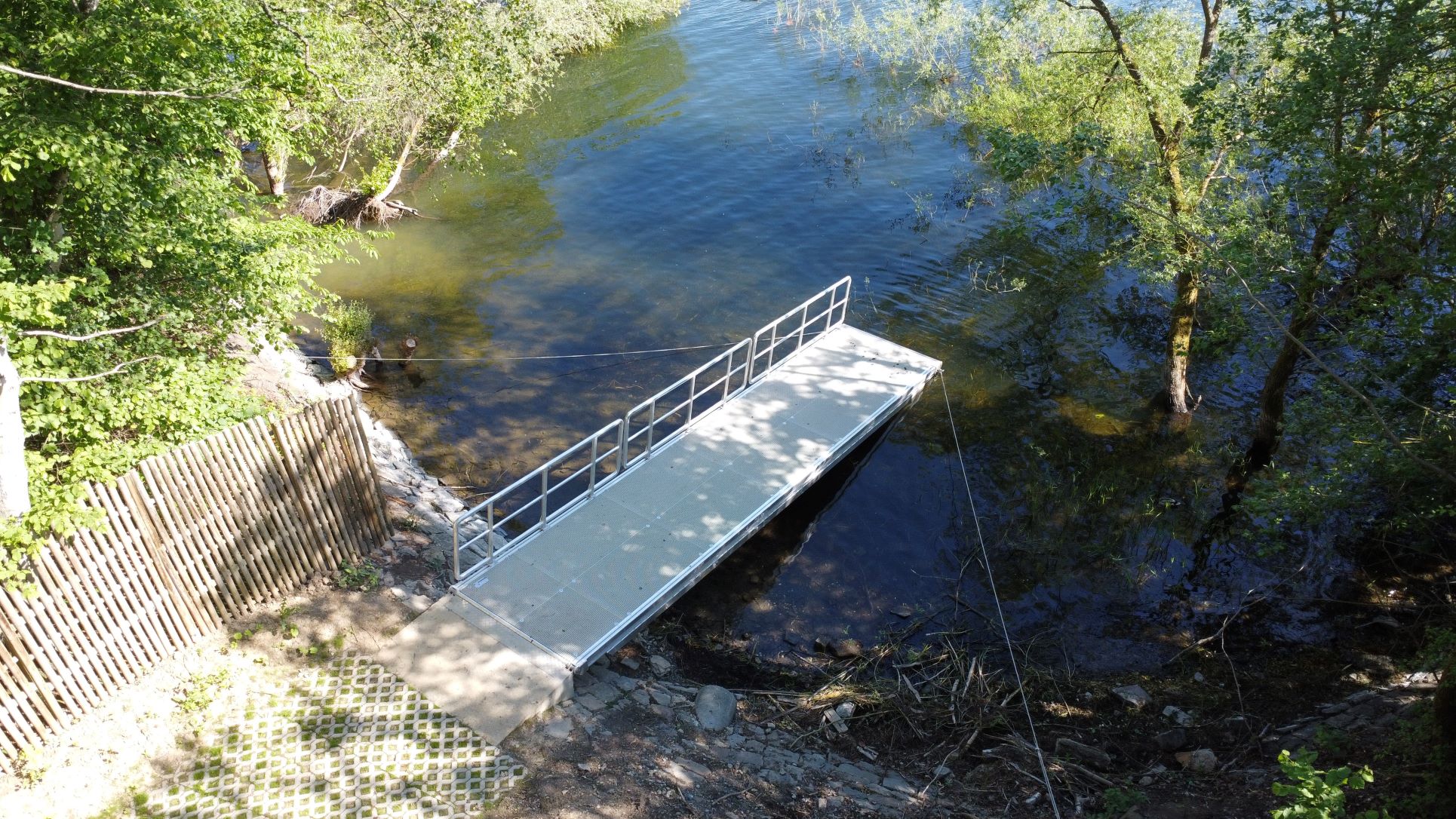 Die Zuwegung am Ufergrundstück und der Steg beim Aufsetzen am Grund haben eine Neigung von 20-22 %.
