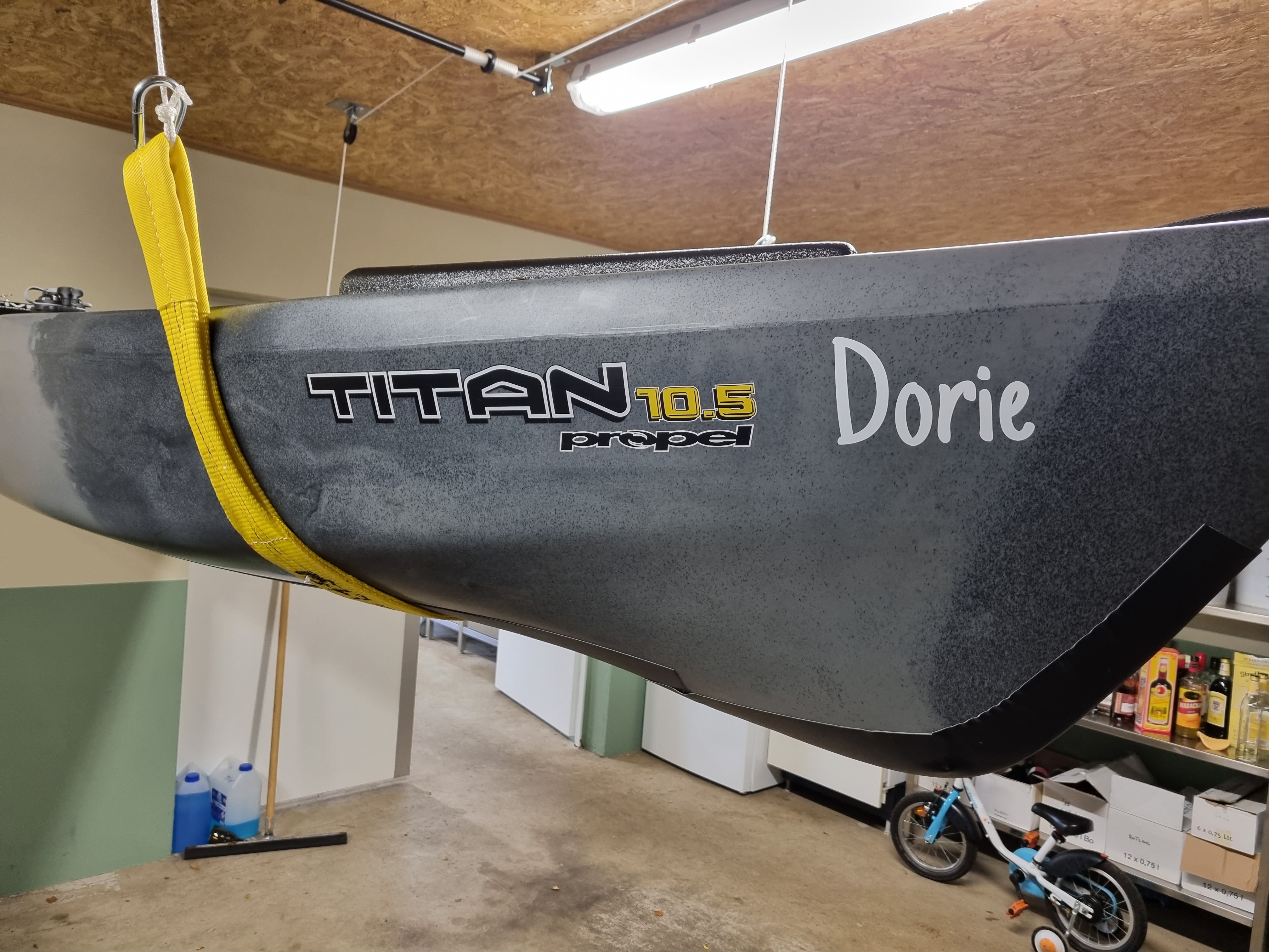 auch ich habe letztes Wochenende es endlich geschafft meine Kajakaufhängung in meiner Hobby-Garage (Anhänger/Fahrräder/Kajak) fertig zu stellen.