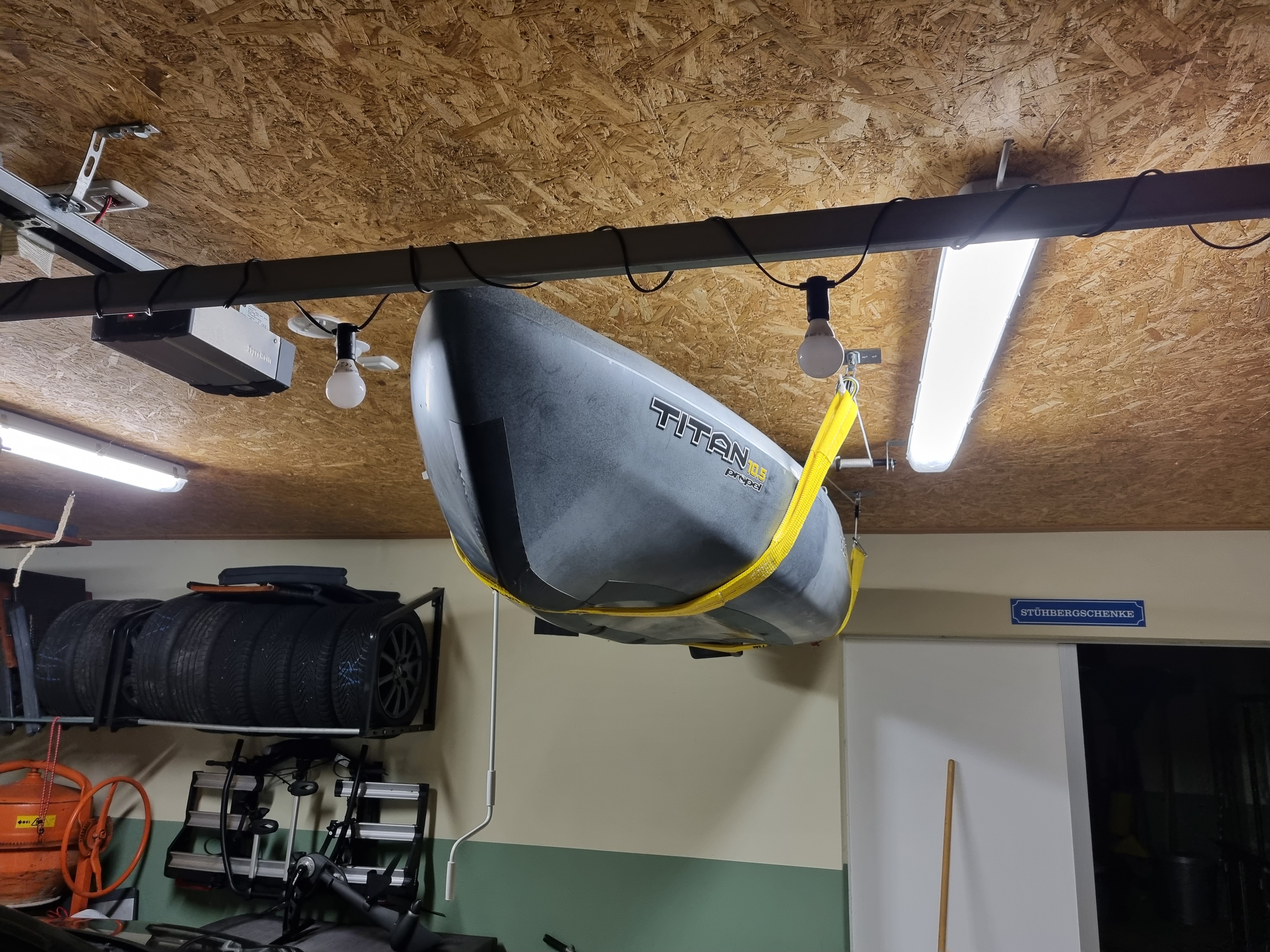 auch ich habe letztes Wochenende es endlich geschafft meine Kajakaufhängung in meiner Hobby-Garage (Anhänger/Fahrräder/Kajak) fertig zu stellen.