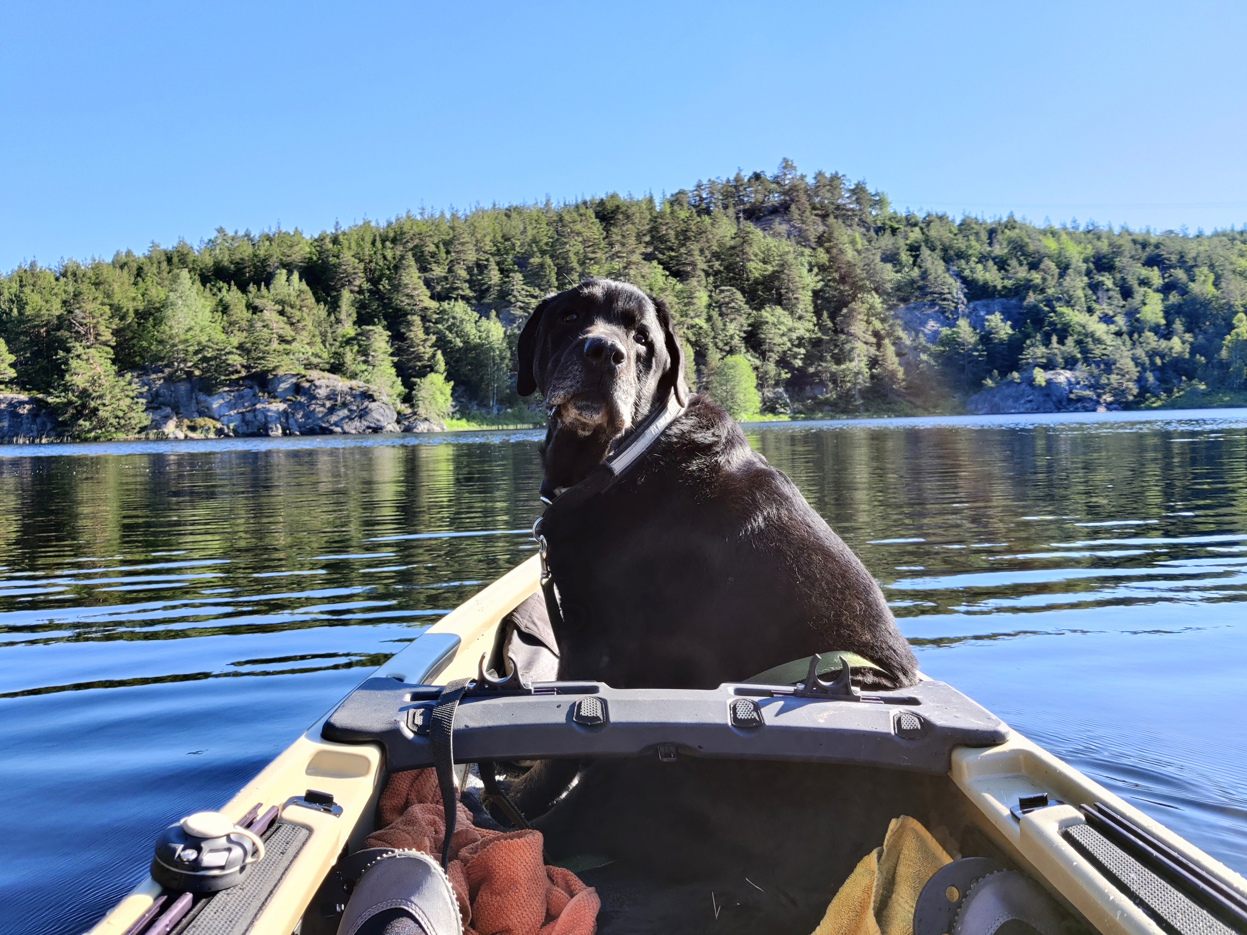 Hallo Kalle, der "Kleine" war schon oft mit auf dem Boot und auch vor Jahren mit auf einem Kayak. Da hab ich aber nicht versucht nebenbei zu angeln. Nun ist er fast 13 Jahre alt und wesentlich ruhiger, mal ausprobieren wie es so geht. Wenn er sich mit seinen 40 kg bewegt wird man es aber so oder so merken. Grüße aus dem sonnigen Agder, Oli.