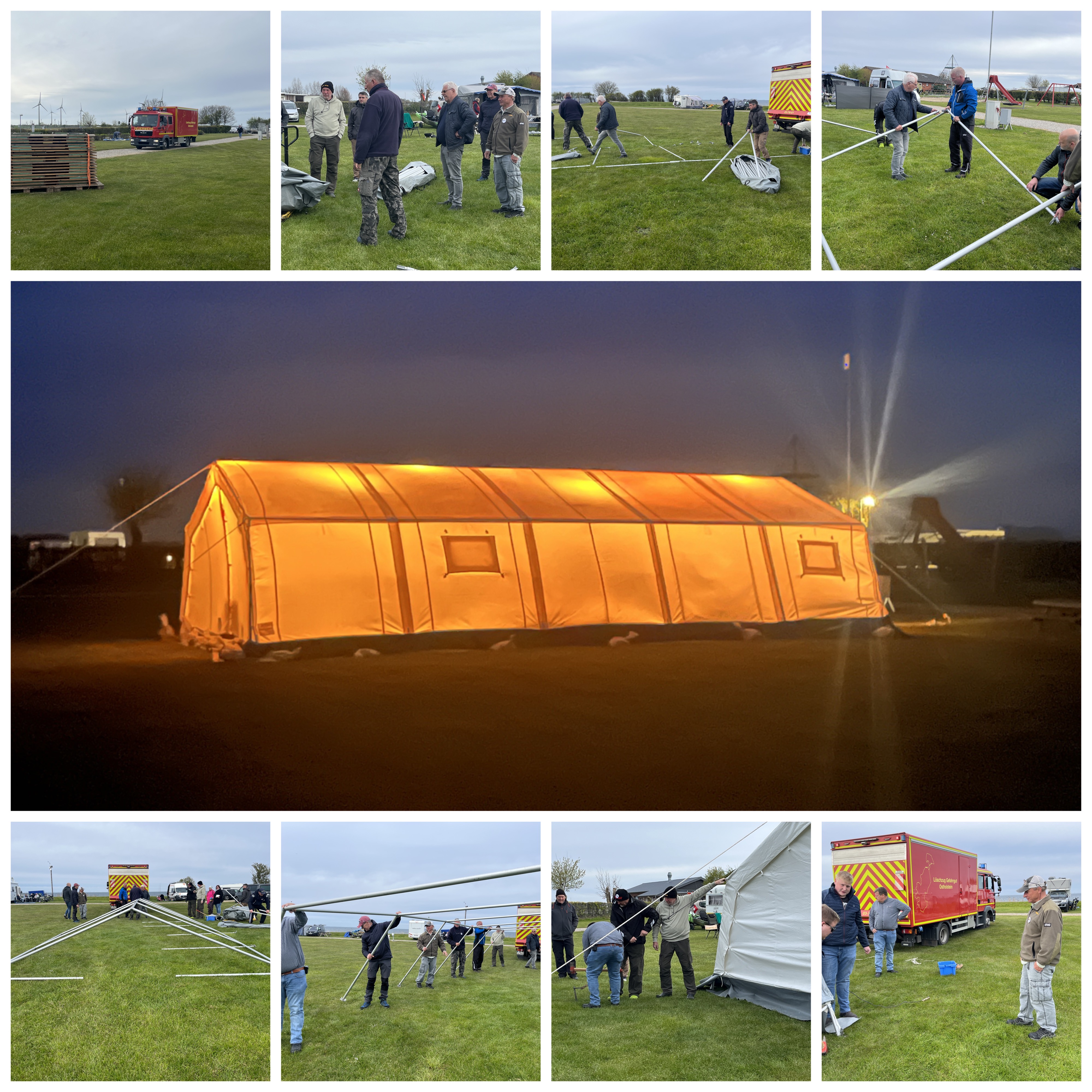Hier ein paar Eindrücke vom Zeltaufbau unter Anleitung der Feuerwehr, das hat alles sehr gut geklappt fand ich.