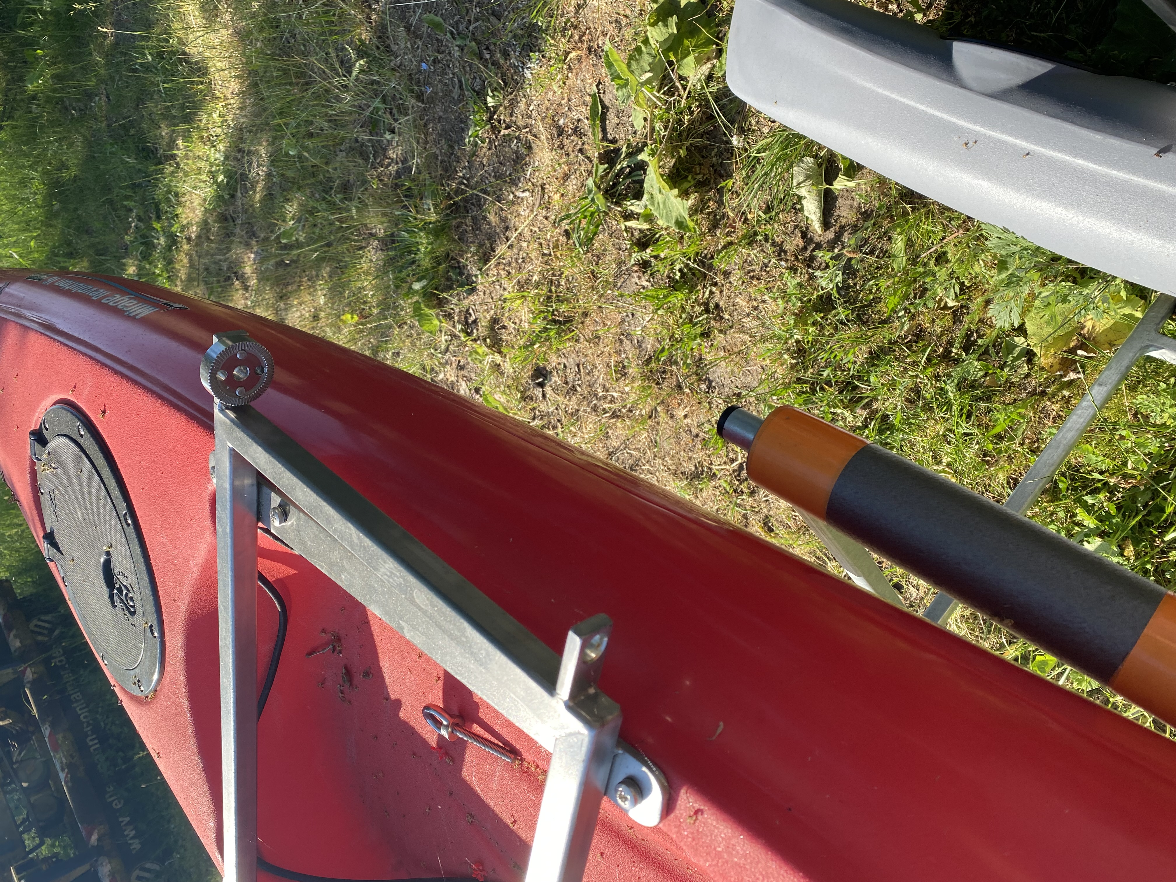 Gesagt, getan, flotte Lieferung, sieht alles gut aus. Ich habe den Haltesatz dazu genommen. Dort habe ich jeweils ein Loch zusätzlich gebohrt, so passen die Halter an vorhandene Gewindebuchsen in meinem WS Radar. Da so ein Radar anscheinend breiter ist, als das klassische Galaxi-Kajak passte das Verbindungsrohr zwischen den Auslegern nicht. In der Werkstatt fand sich ein Rohr mit passendem Durchmesser, also auf die korrekte Länge gebracht und fertig.