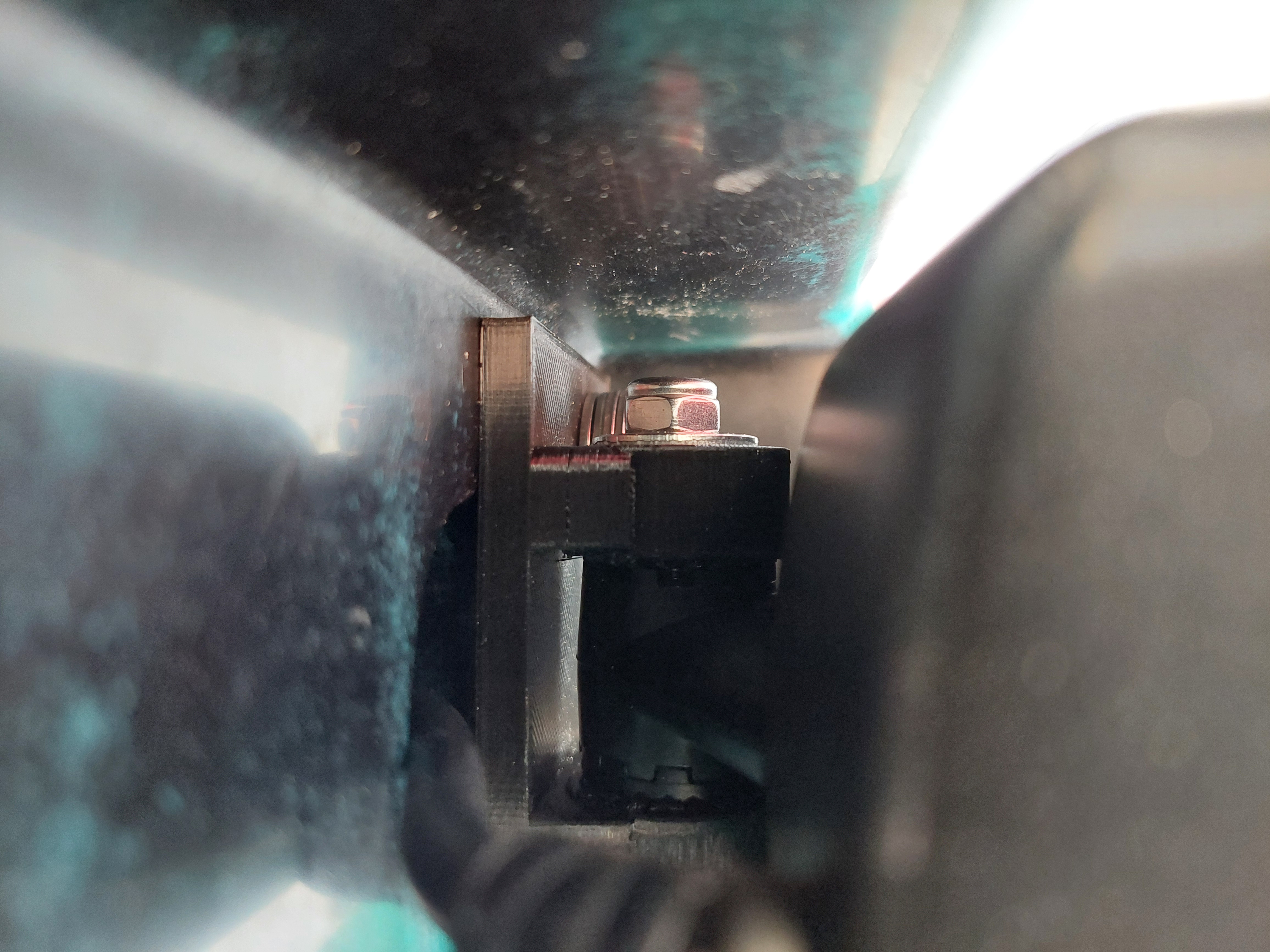 Obwohl da eigentlich eine sichernde Unterlegscheibe drunter ist war das Teil wieder lose.