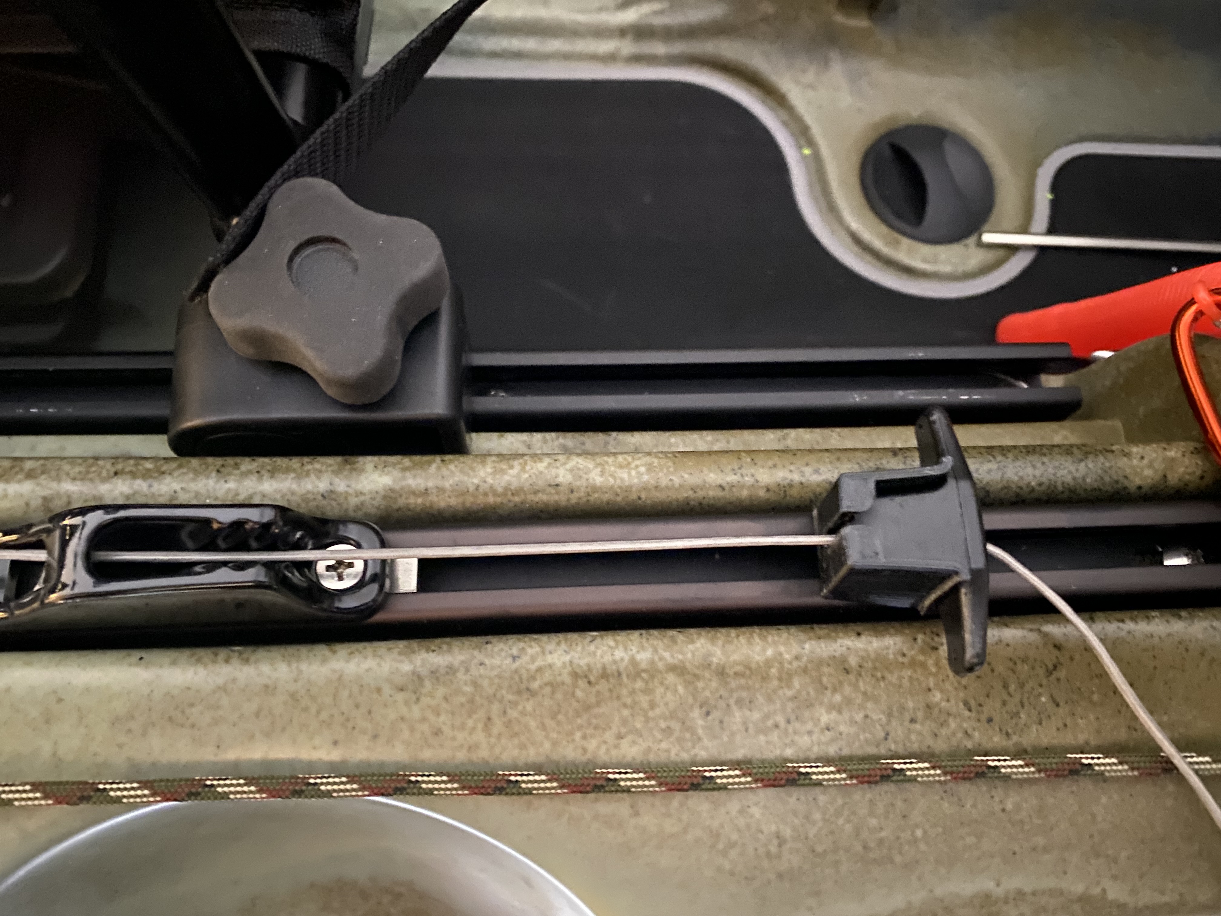 Der Griff für das Springblade wird bei dem hochgefarenen Ruder nur in der Leiste geklemmt (das Seil)