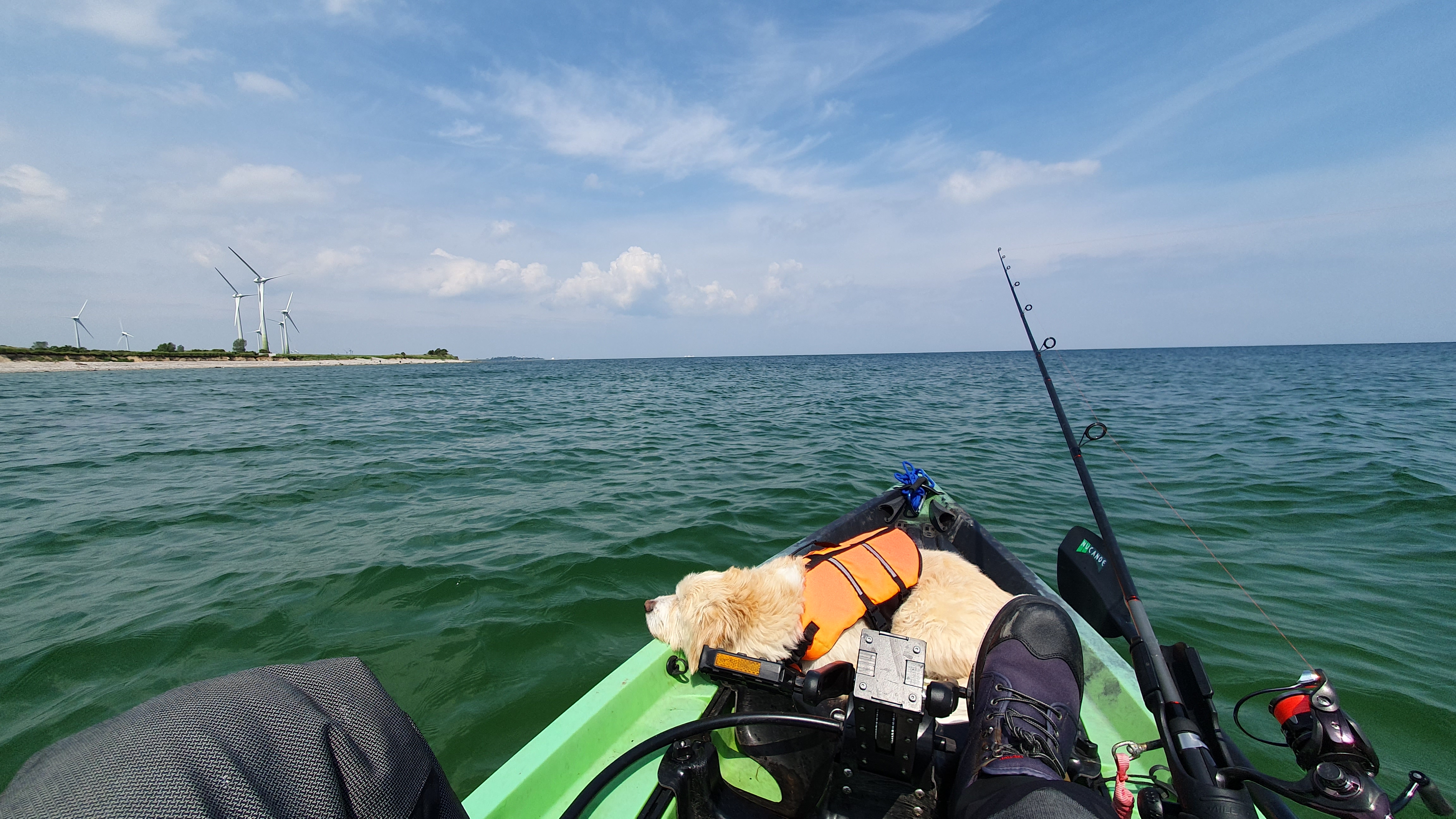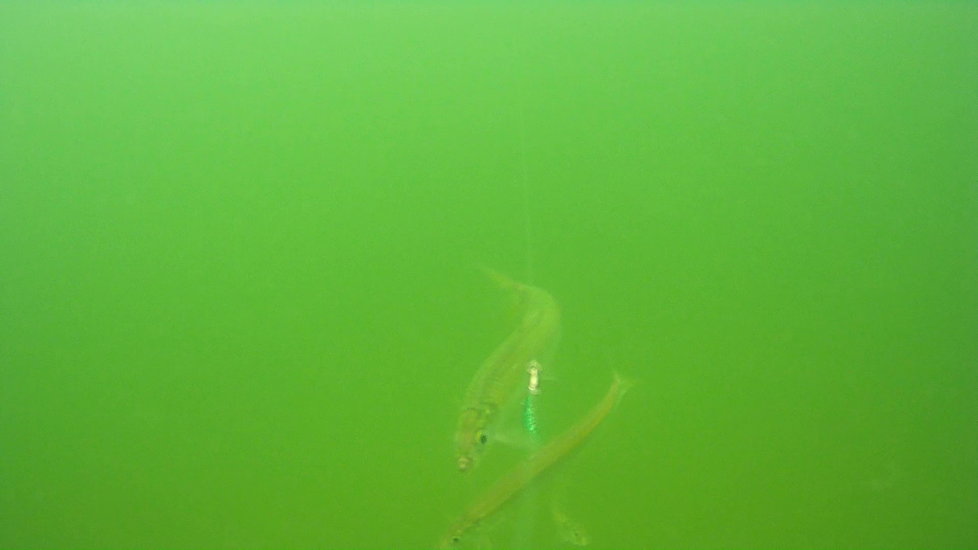Da der Sandaal nur sehr flach lief, fischte ich ufernah in einer Tiefe von 2 bis maximal 3,5 Metern. Nebenbei schleppte ich noch einen Blinker. Ich hatte schnell viele Hornhecht Bisse vor Allem auf den Blinker. Diese blieben jedoch nicht hängen und ließen teilweise kurz vorm Boot los