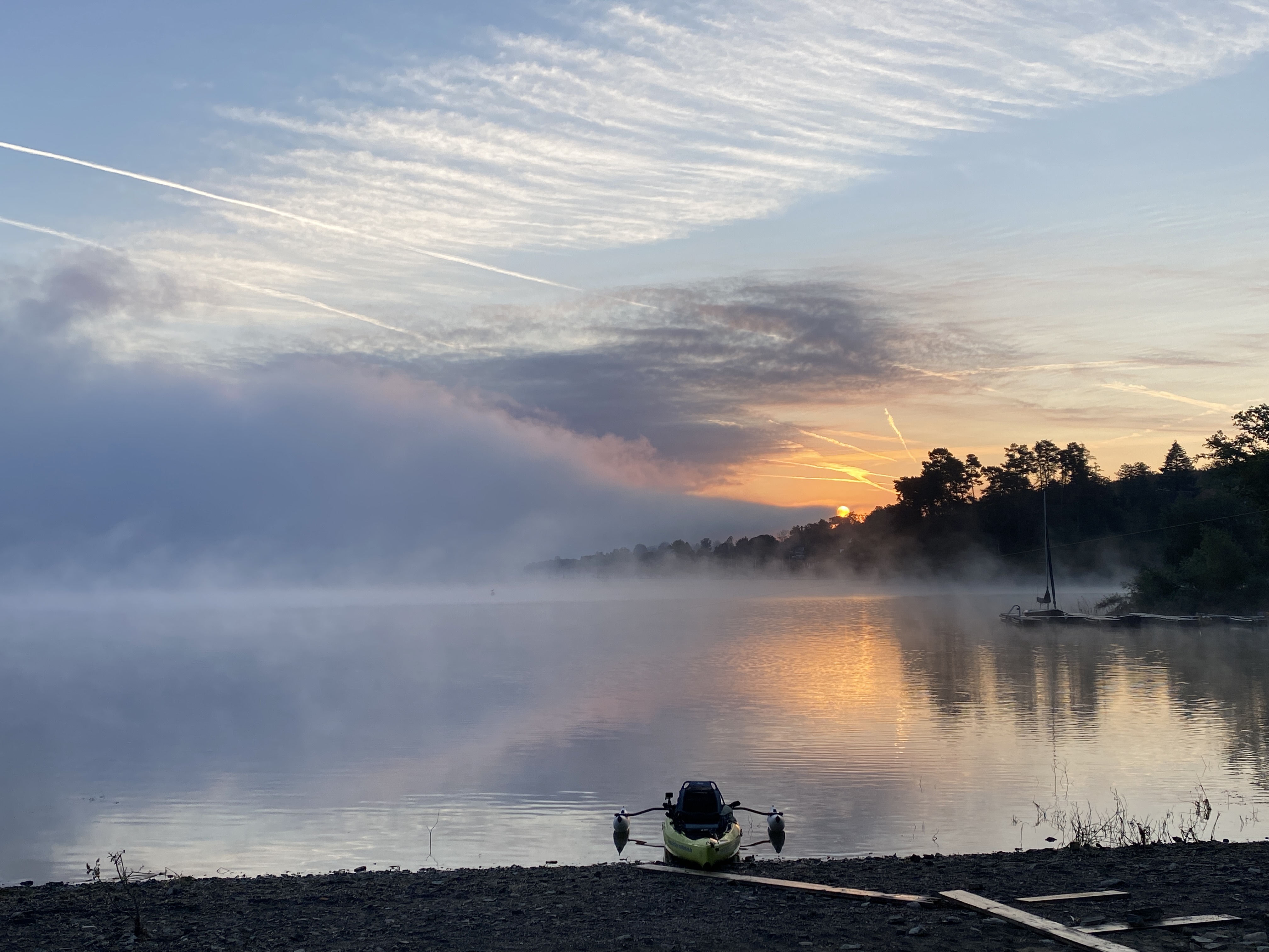 Der Fisch hat mehrfach Fluchten hingelegt, als ob die Rollenbremse abwesend wäre. Der Großkopf-Kescher hat wiederholt seine Berechtigung unter Beweis gestellt und dem Fisch viel Platz geboten. Nach 1-2 Fotos durfte die Hechtdame zurück und an ihrer Größe und Gewicht weiterarbeiten. Gemessen habe ich den Fisch am Kajakrumpf anlehnend. Der Hecht war ca. 108 cm.