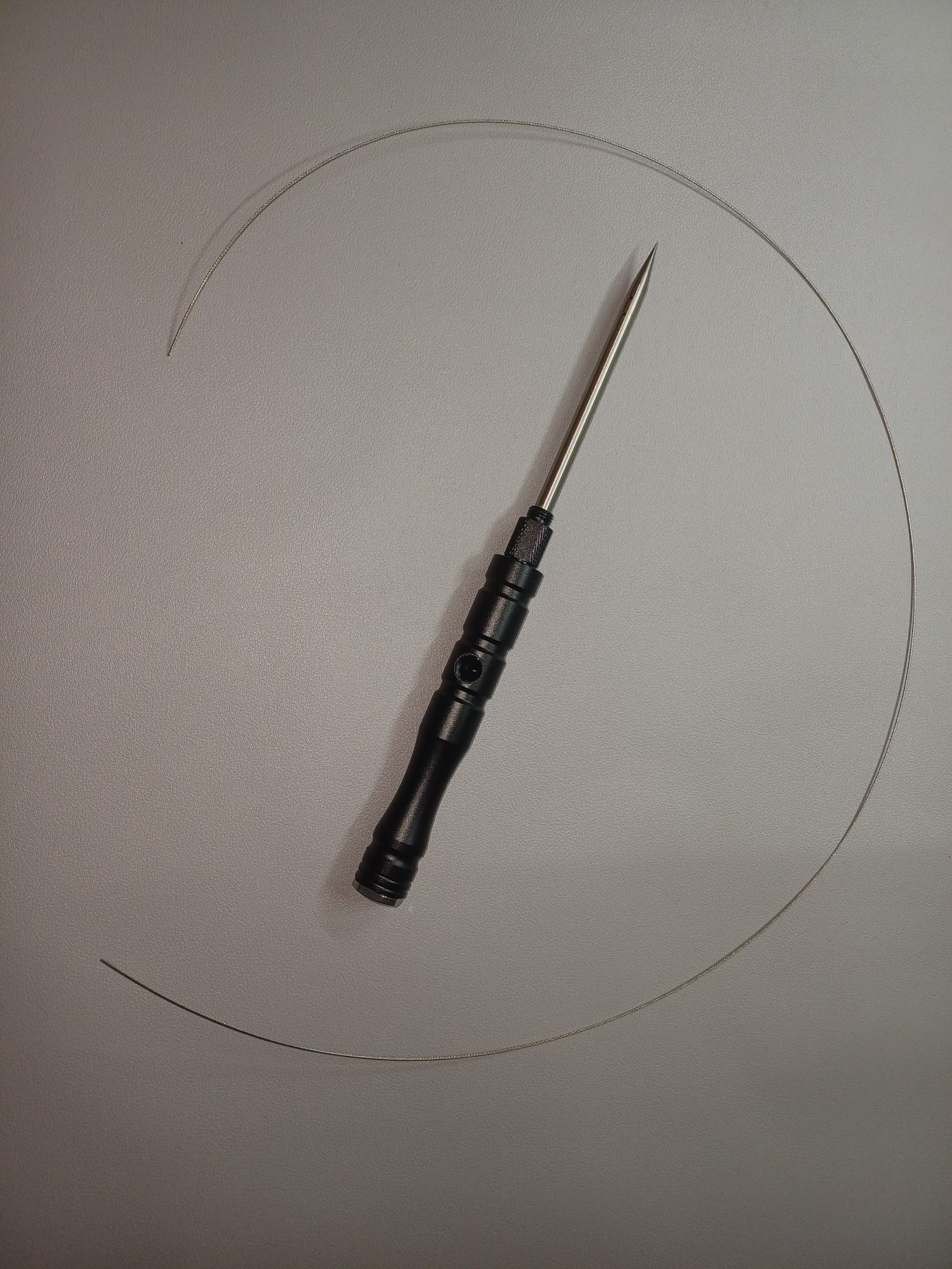 Bei meiner Suche bin ich dann auf dieses wunderbare Teil von Temu gestoßen. https://tinyurl.com/bdds5jsb (Der Link zu Temu war fast so lang wie dieser Text) Ergänzend als Draht fürs Rückenmark gab es noch für einen Euro 10m 100lb tragendes 1x7 Stahlvorfach. Somit habe ich mein Ike-Jime Set, bei welchem ich zudem die Spitze noch auf zwei Arten montieren kann (siehe Fotos unten) und für mich wichtig, gefahrlos innen sichern kann für 6 Euro zusammen. Ob und wie es funktioniert und ob der Geschmacksunterschied wirklich so groß ist, werde ich wohl frühstens im Mai 2026 berichten können, wenn es wieder auf die Nordsee zu den Wölfen geht.