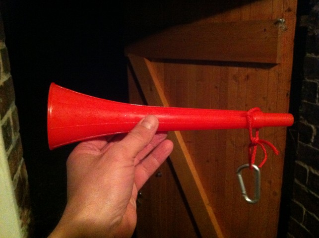 akustische notsignale sollten immer dabei sein. ich zeig hier mal meine discount-lärmmachausrüstung.