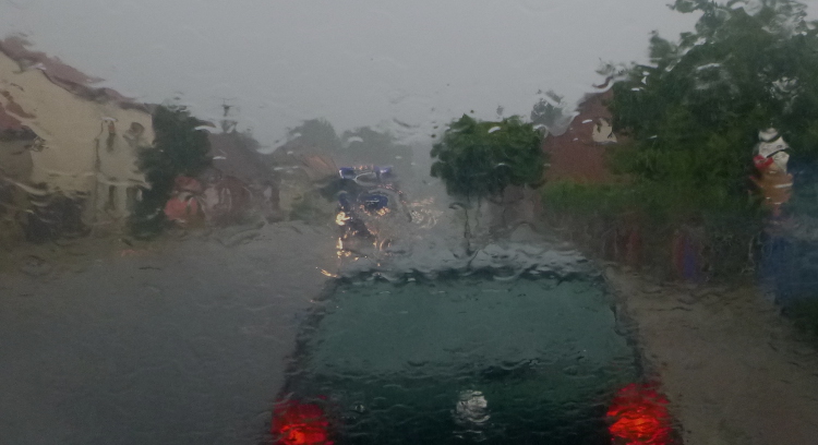 !!!! Jetzt will ich einladen und es schifft wie aus Eimern, nachdem es wochenlang nicht einen Tropfen geregnet hat! Also verzögert sich die Abfahrt!