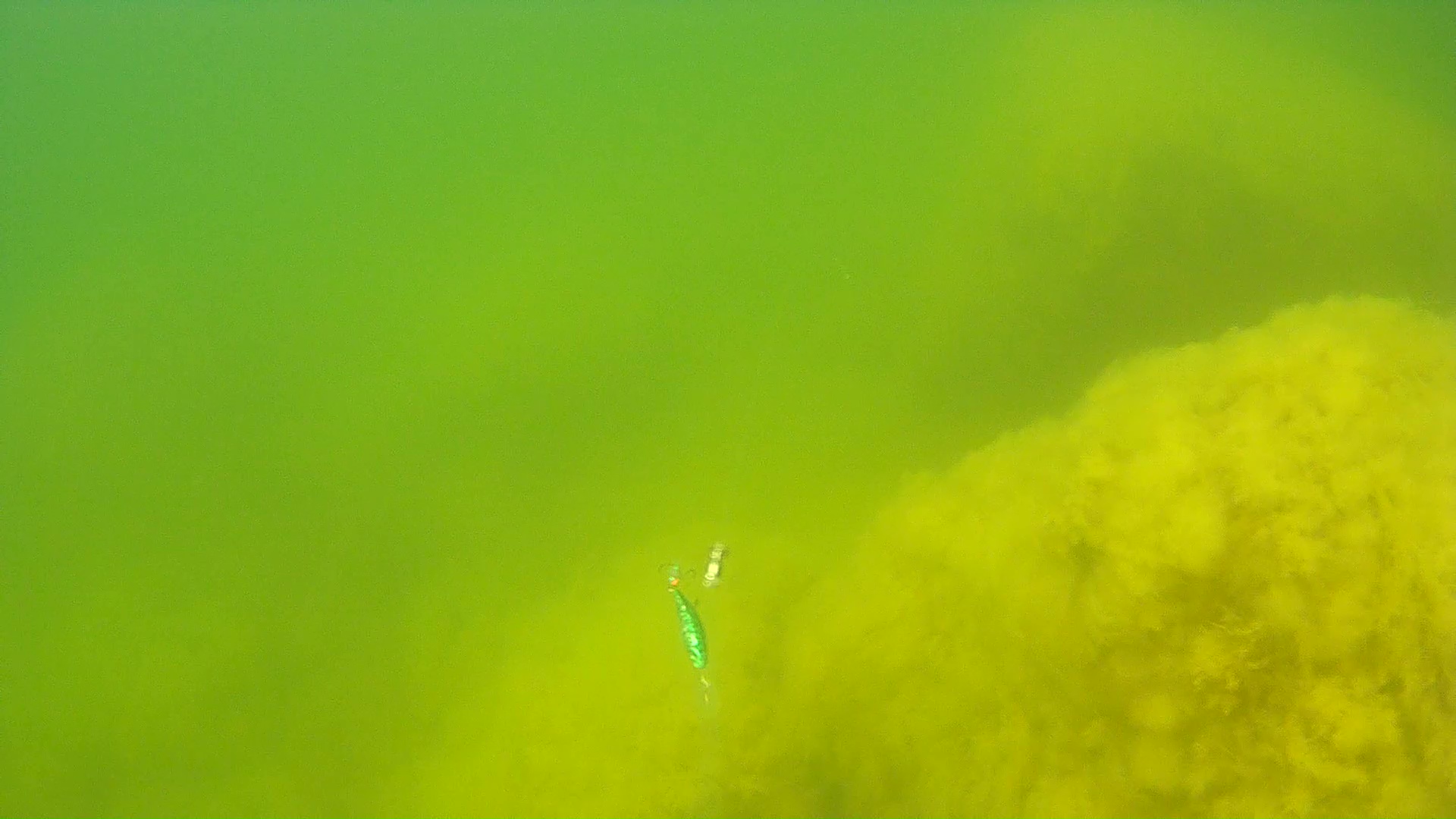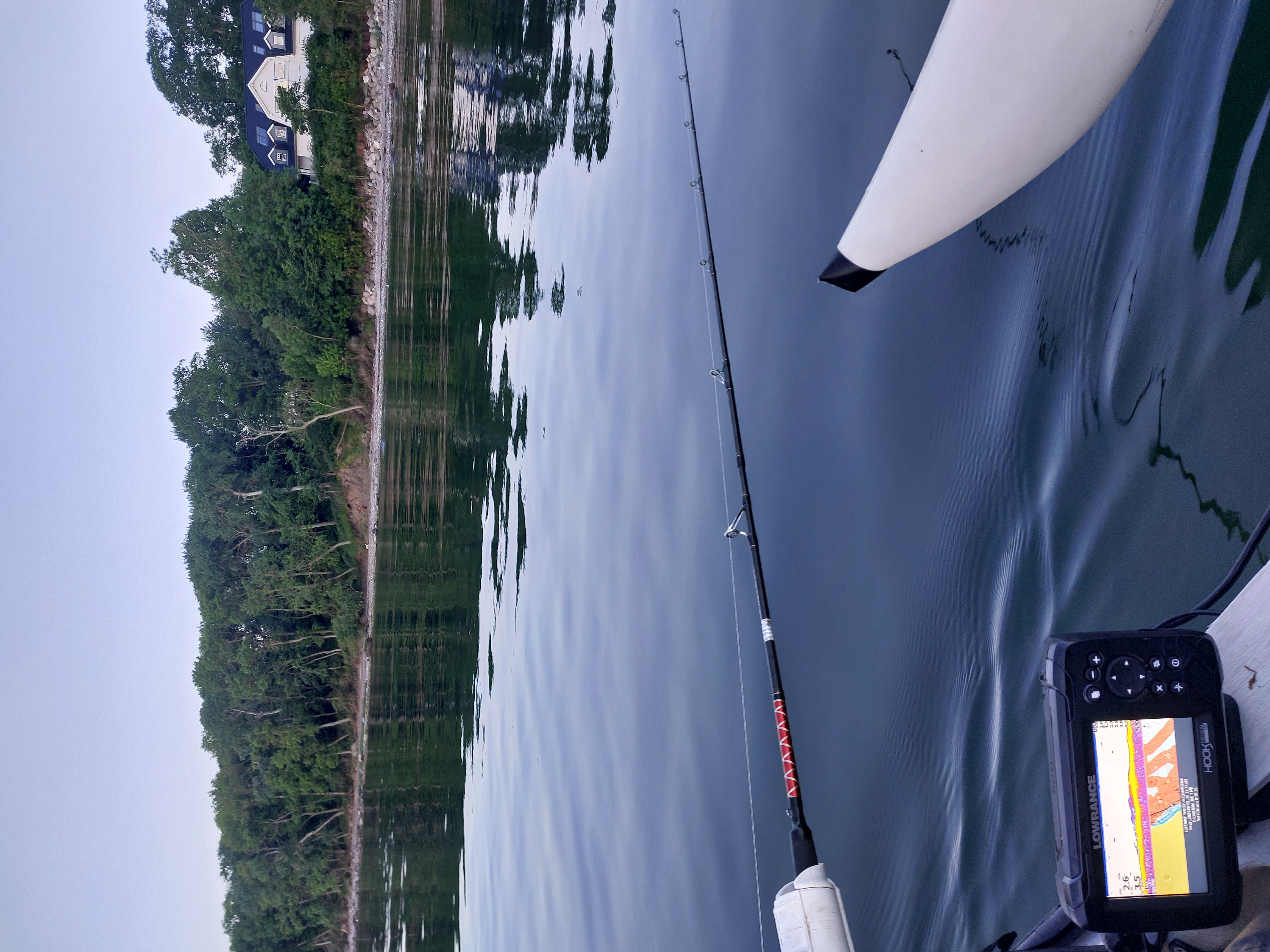 Da der Sandaal nur sehr flach lief, fischte ich ufernah in einer Tiefe von 2 bis maximal 3,5 Metern. Nebenbei schleppte ich noch einen Blinker. Ich hatte schnell viele Hornhecht Bisse vor Allem auf den Blinker. Diese blieben jedoch nicht hängen und ließen teilweise kurz vorm Boot los