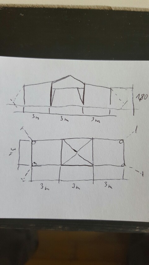 Wir könnten ja den Pavillon mit Hilfe von Tarps bzw Planen verlängern. Wir brauchen nur 2 Stück und die hätte ich. Brauchen dann nur 4 ca 180m lande Stöcke oder Ähnliches. So kommen wir auf 9m l und 3m b und ca 1,80m h