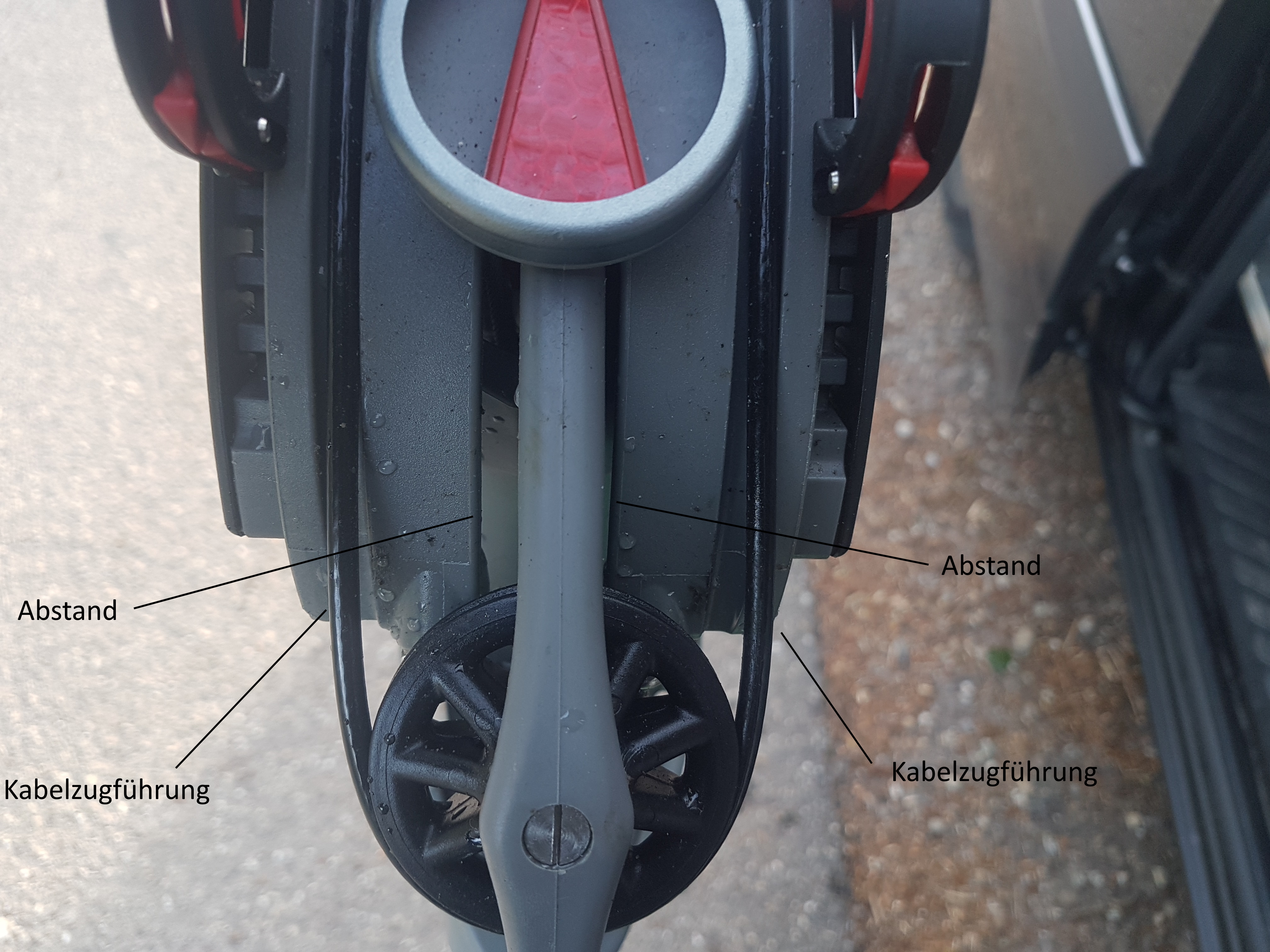 Genau, beim fahren verändern sich die Abstände, im Ruhezustand sollte aber der Abstand gleichmäßig sein. Bei mir ist die linke Führung so versetzt, das diese auch an der Abdeckung vom Antriebszahnkranz schleift.