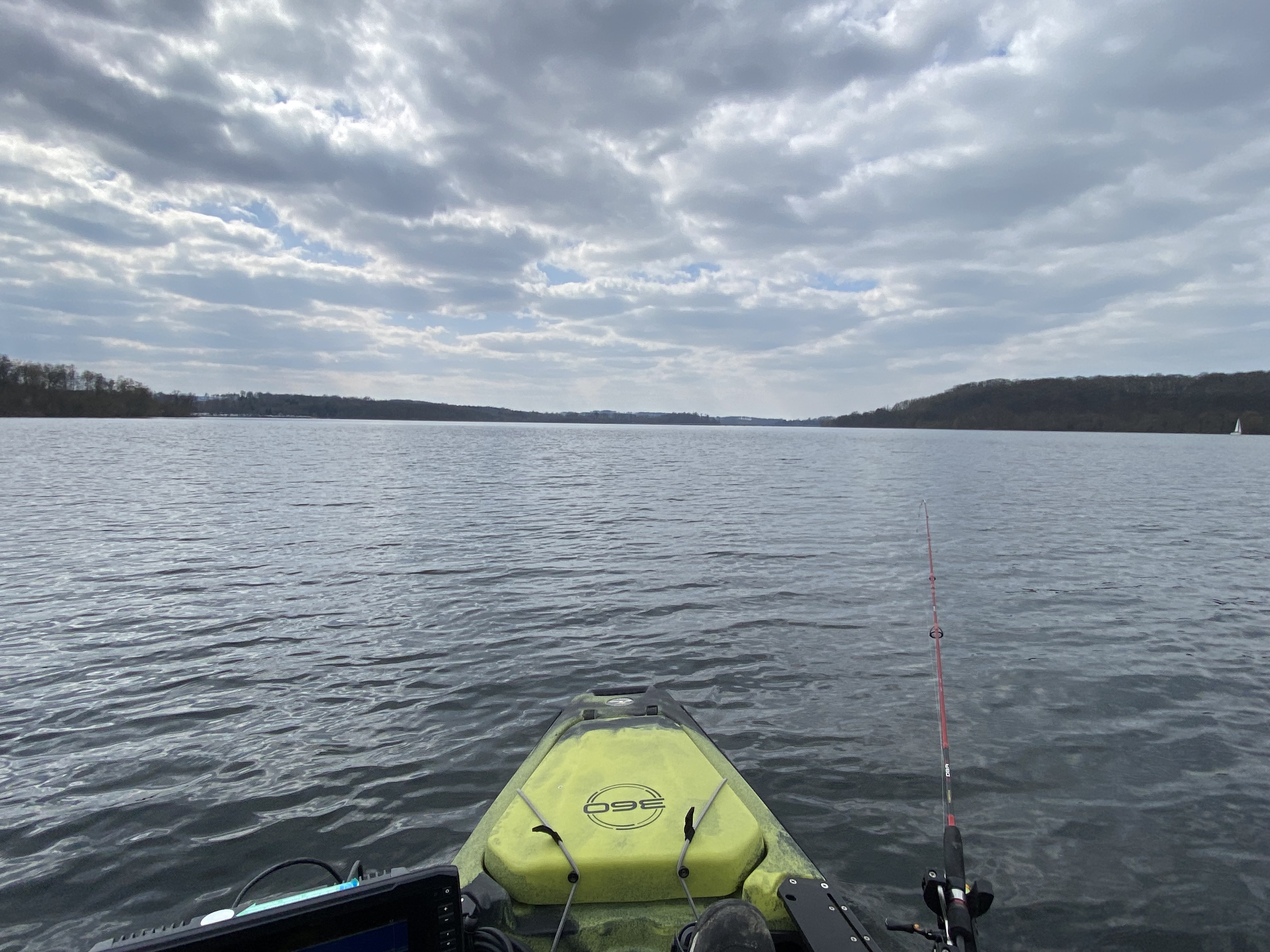 gestern am Möhnesee gab es ungewöhnlich viele Angler, überwiegend mit Ruderbooten, ein paar Bellyboote, und wir beide mit Flo mit den Kajaks.
