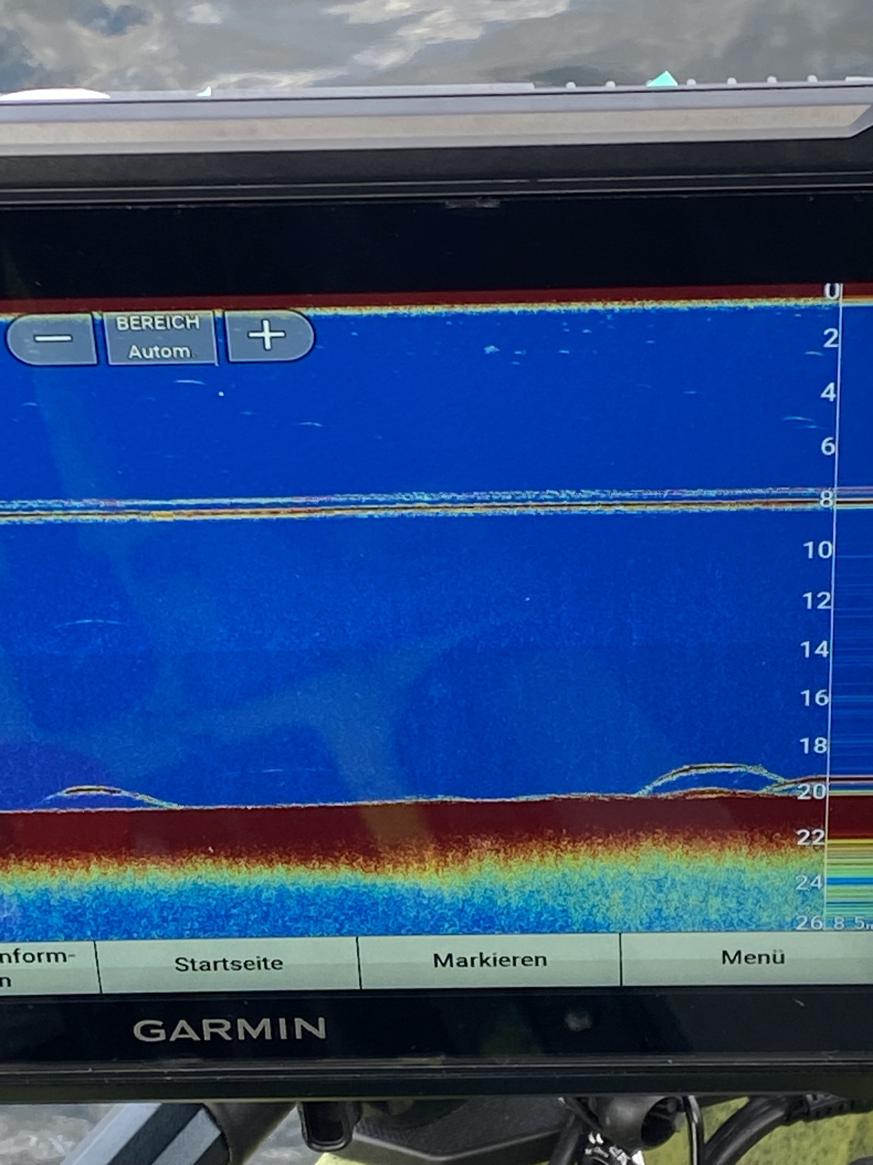 Nicht weit weg von unserem Wasserzugang zeigten die Echolote reichlich Futterfische und sogar ein paar größeren Sicheln.
