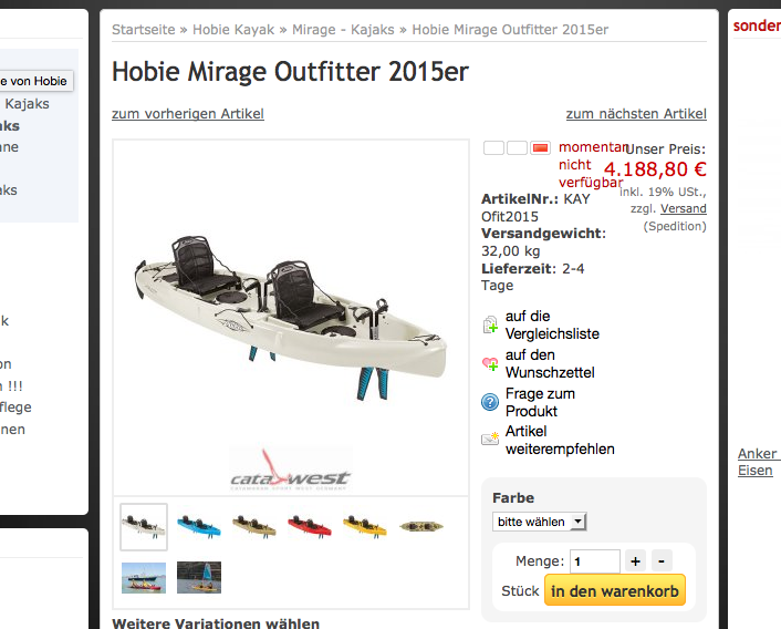 Ralf, ich war auch überrascht wie gut das zu dritt auf dem Outback ging. die Prinzessinnen saßen im Heck und auf dem Bug und der Esel in der Mitte musste trampeln.