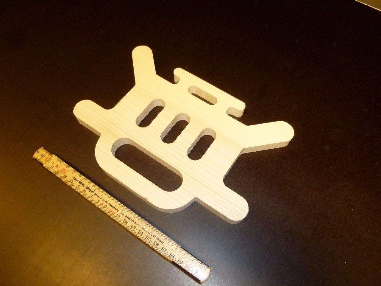 Auf die Haspel passen ca. 40m 4mm-Schnur. Den "Prototypen" habe ich erst mal aus einfachen Fichtenholz gefräst. Eine Siebdruckplatte steht aber schon bereit. Materialaufwand ca. 2€, Fertigungszeit ca. 4 Miunten...