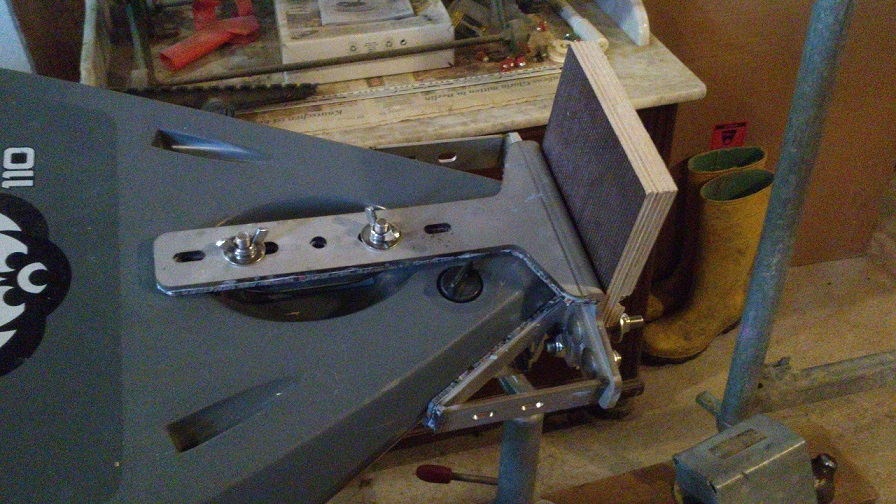 Dieses liegt am Heck seitlich, von oben, und von hinten an. Mit Langlöcher kann man etwas die Geometrie verstellen. (Vielleicht auch für andere Kajaks geeignet?)