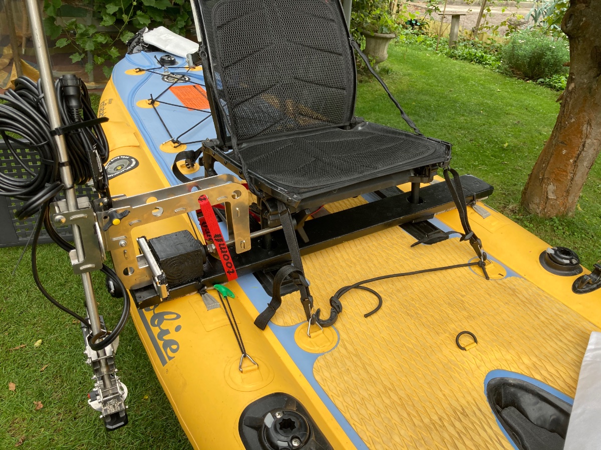 Also habe ich erstmal nur die zwei vorderen Ribports verklebt, so das ich in der Zwischenzeit zumindest das Echo schonmal nutzen kann. Dazu habe ich mir ein Fasten System besorgt das stabil aussah, der SI Geber der Hummingbird G3N Serie ist recht massiv und es hat ein wenig Tüftelei und fünf Minuten Trennschliefer Arbeit bedeutet bis alles passte. Jetzt warte ich nur noch auf die Lieferung von passenden V2A Schrauben um sowohl den Geber als auch das Echolot auf einem Ribport befestigen zu können, mal schauen.
