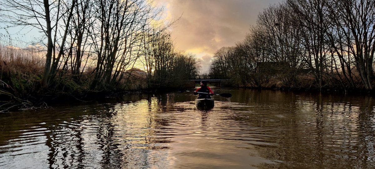 Auch das Angeln vom Kajak wollte ich testen. Spinnfischen ist hier jedoch derzeit nicht erlaubt, außerdem bin ich mir noch nicht sicher, ob es in diesem flachen Gewässerabschnitt überhaupt maßige Hechte oder große Barsche gibt. Bei jeder Fahrt habe ich jedoch stets an derselben Stelle einen Schwarm dicker Brassen aufgescheucht.