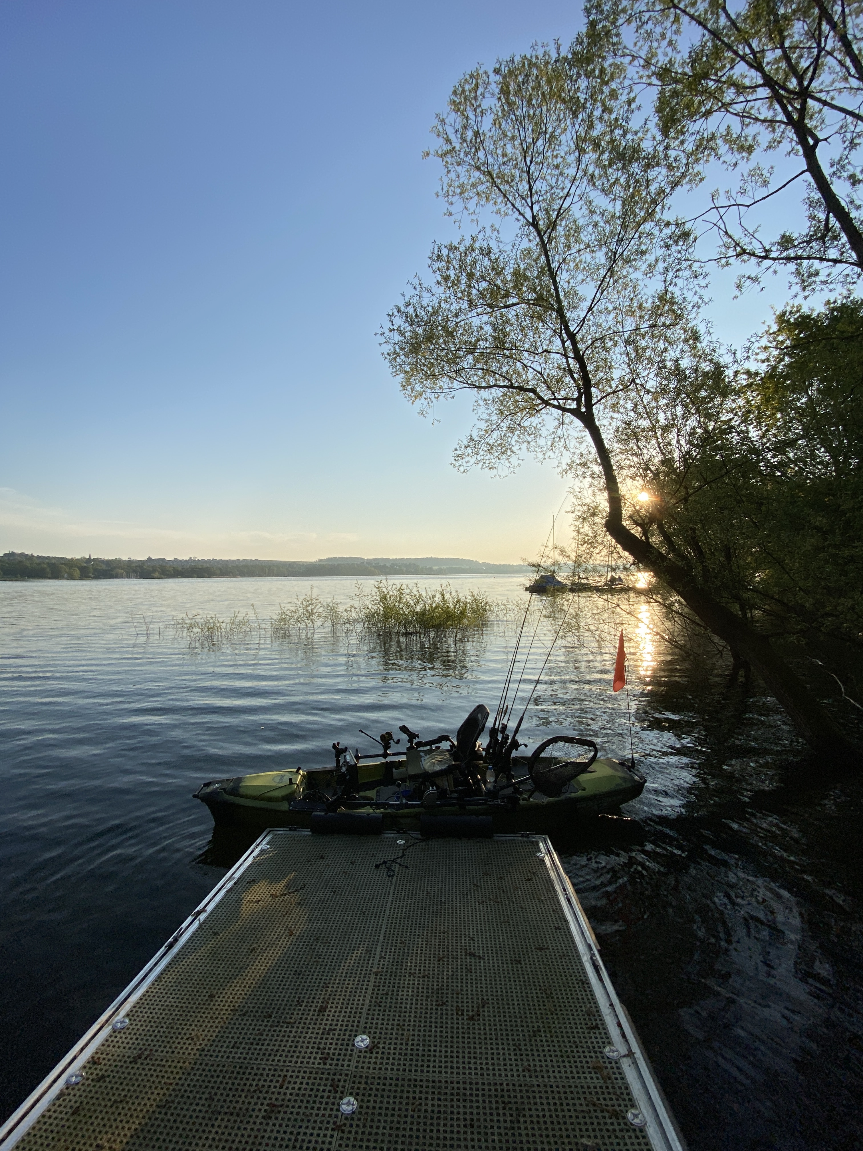 Seit einigen Wochen ist auch eine Vertikalrute für Welsangeln mit an Bord. Einmal durfte ich an einem Samstagmorgen direkt vor mir, ca. 10-15 Meter, einen buckelnden Wels