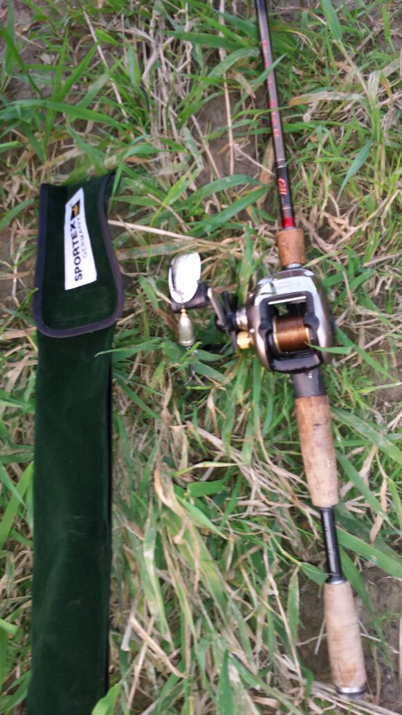 Eine SHIMANO CASTAIC 201SF, dazu noch eine Sportex black Pearl und einen Blue Fox Spinner
