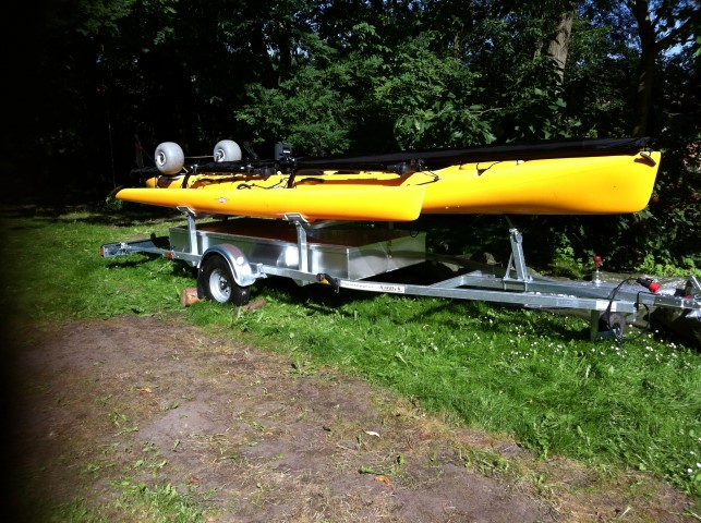 Dürfte doch eigentlich kein Problem darstellen - rotes Fähnchen ran hinten ran - und los. Man liest eher wenig über Anhängertransport von Kayaks!?