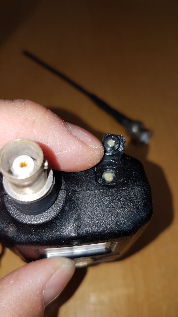 Das Gerät hatte nicht so wirklich eine Chance... Der Kopfhörerausgang kann btw das Gerät nicht fratzeln, das komplette Bauteil ist vergossen und ein Kurzschluss in der Buchse würde denke ich nicht das ganze Gerät lahm legen. Die 4 Schrauben die außen das Gehäuse zusammen halten, haben alle eine Gummidichtung, die aber definitiv versagt haben. Bei genauerem Hinsehen fallen auch die mit Salz verkrusteten Kontaktübergänge auf. Die Ablagerungen deuten auch darauf hin, das relativ viel Wasser genau hier eindrang. Werde nach den KFO mal die Platine ausbauen, alles reinigen, nachlöten und den PTT-Schalter tauschen.