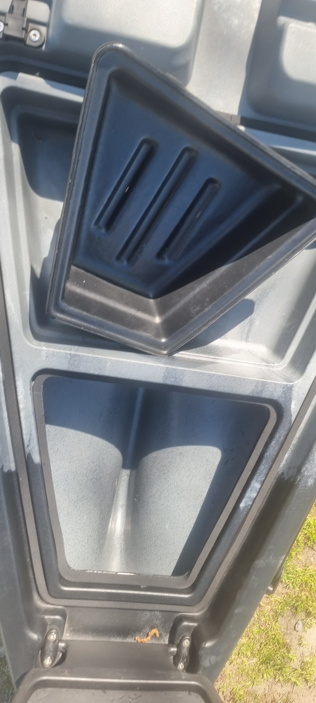 Ich wollte dann zur Halbzeit einkehren beim Seestüberl, als plötzlich wieder der Steuerhebel anfing so labbrig herum zu hängen. Jetzt hatte ich alles dabei, also den Hebel abgenommen und festgestellt, dass wieder die Schraube darunter, die den Hebel mit dem Kontergewicht verbindet lose geworden war. Also erneut angezogen und Hebel wieder drauf. Mit dem Yak vor dem Stüberl geparkt und nach der Mittagspause ging es weiter. Leider mit dem gleichen labbrigen Hebel wie vorher.