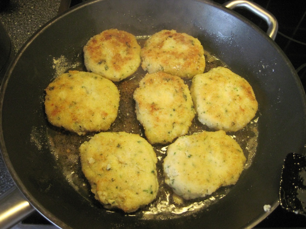 Diese Zutaten vermischen und eventuell mit Paniermehl etwas strecken, wenn zu feucht.