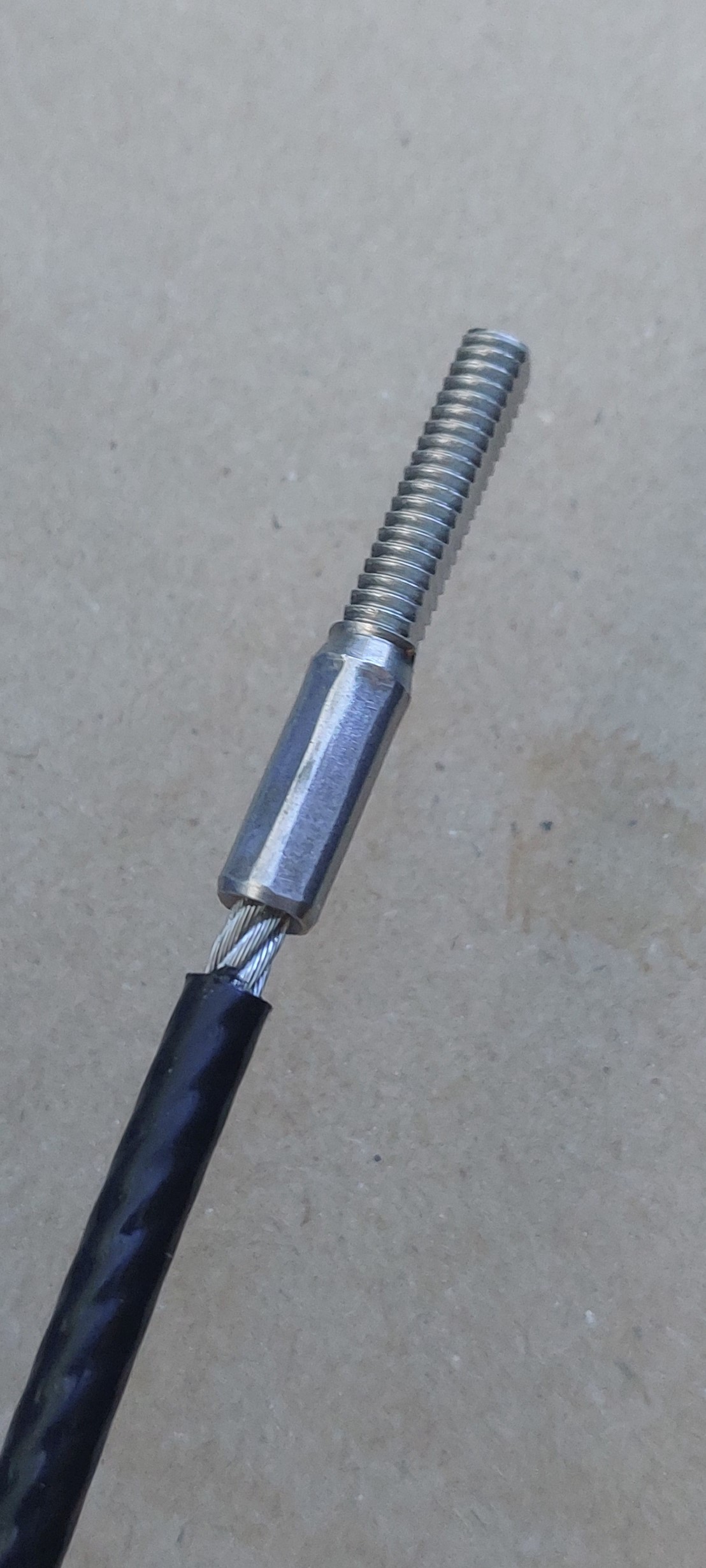 Wieso hört die PVC-Beschichtung beim Drahtseil kurz vor Gewinde auf? Ich habe keine Antwort gefunden und mit Schrumpfschläuchen die Lücke geschlossen: