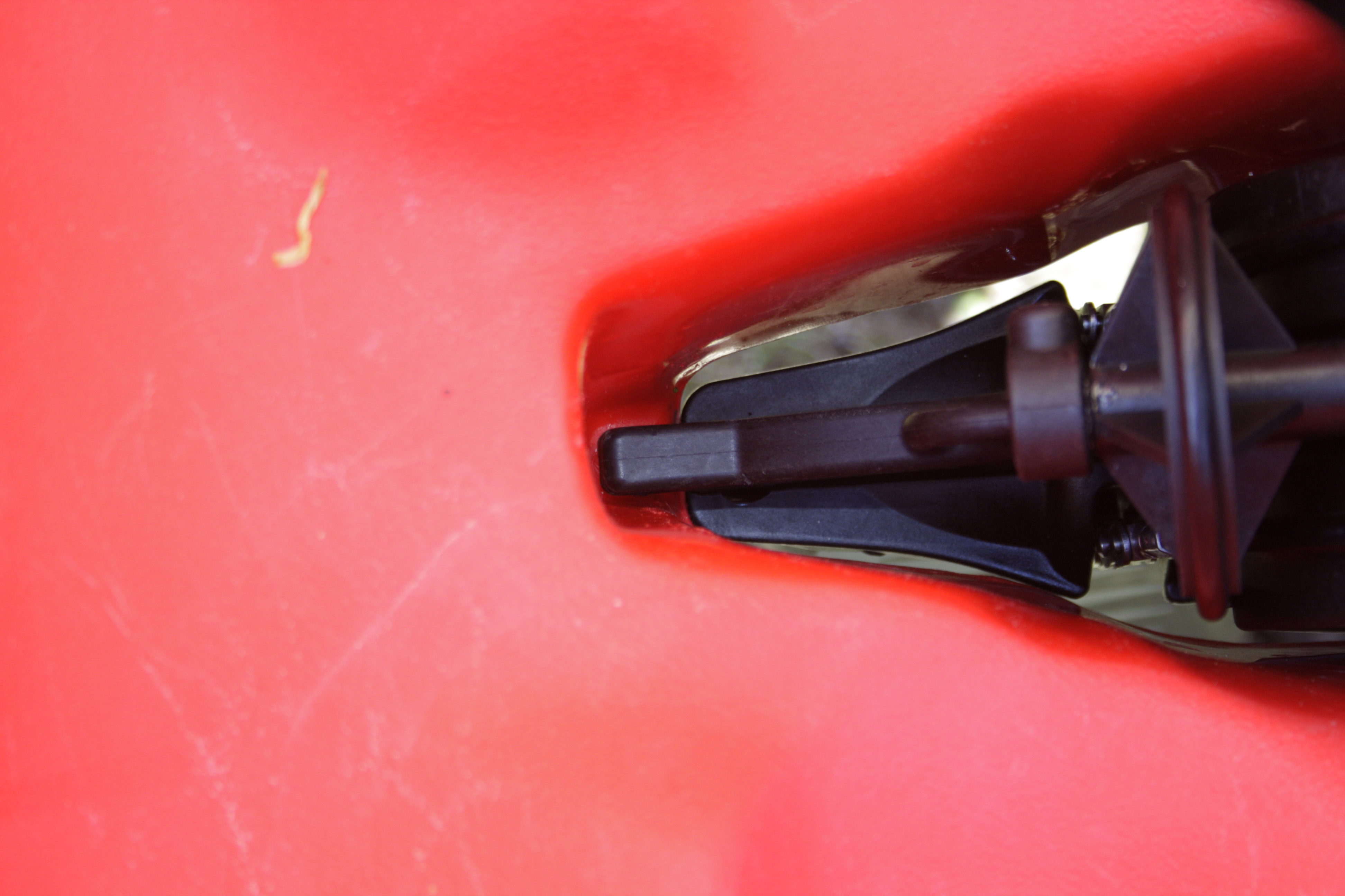 Am vorderen Teil der Führung scheuert die schwarze Kunststoffnase auch und hat schon Abrieb erzeugt