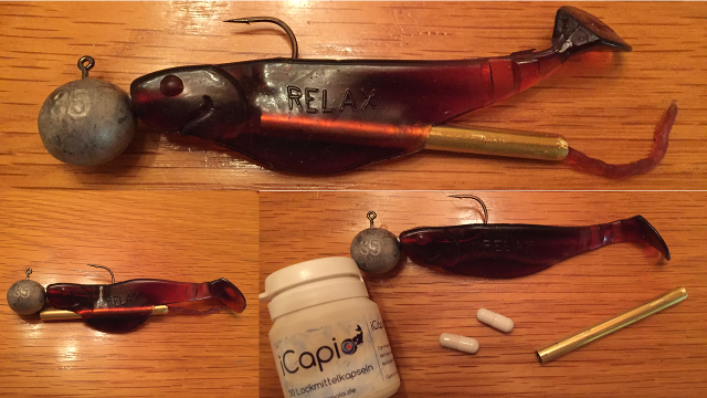 - man stanze oder bohre einen Kanal in einen beliebigen Gummifisch (min. Durchmesser von 7mm)